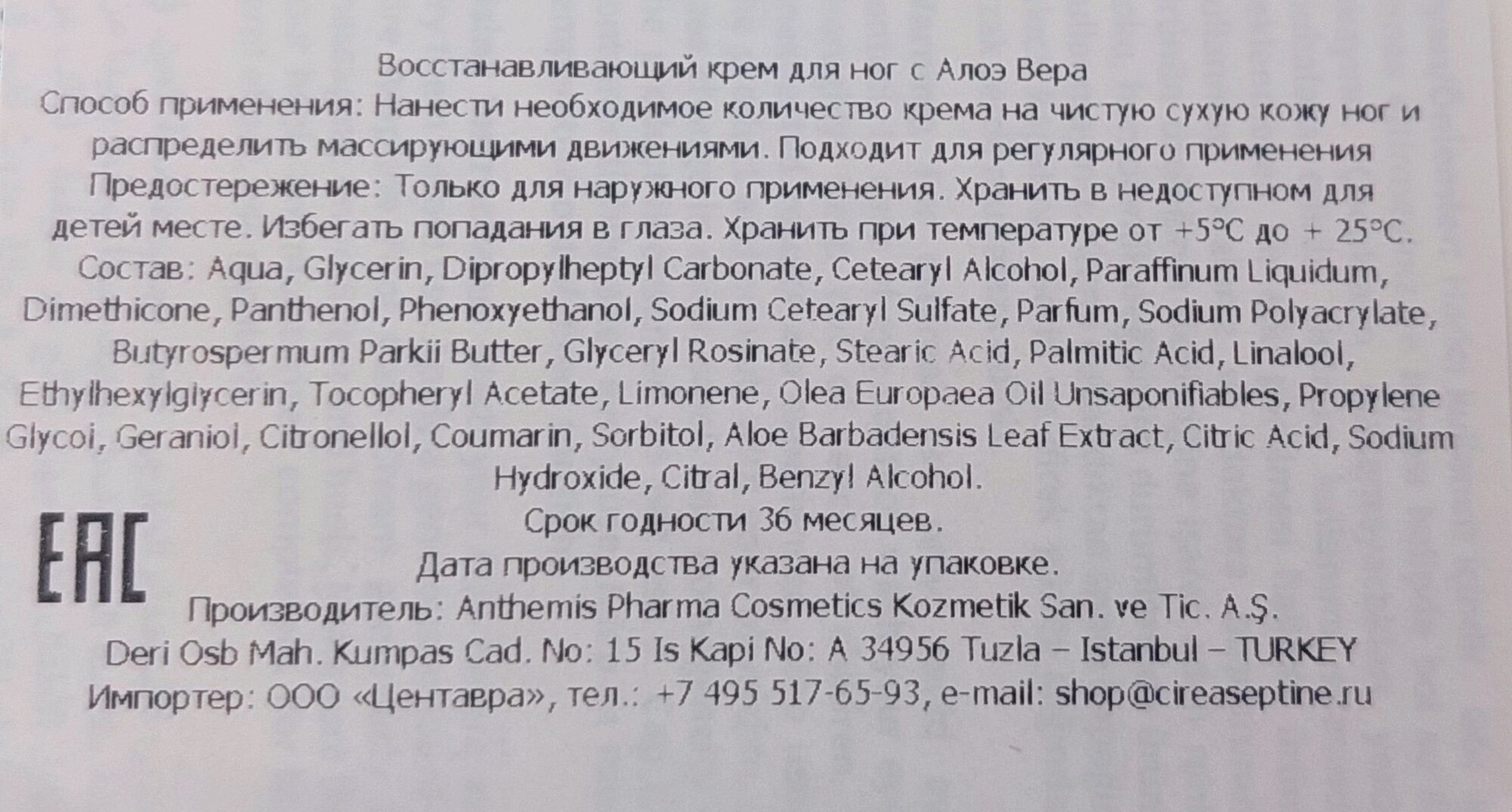 Увлажняющий питательный крем для ног с алоэ вера 75 мл интересное: