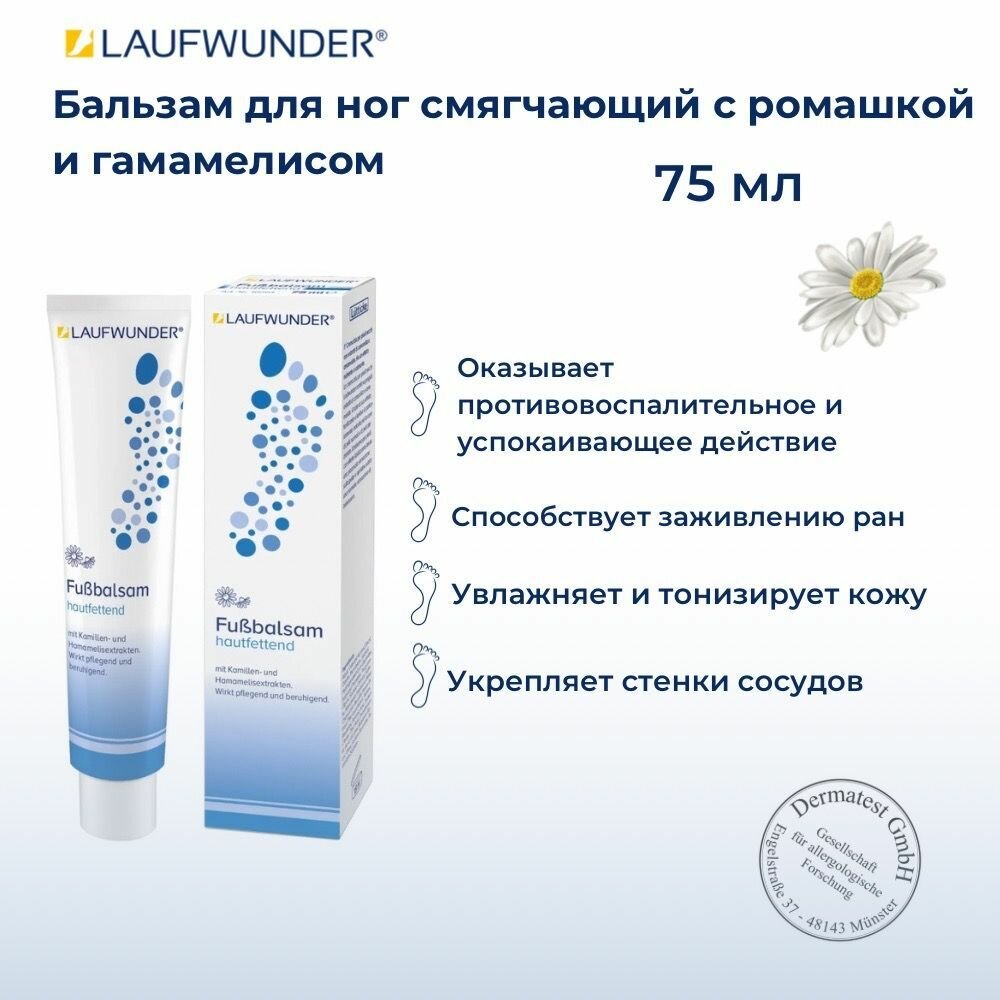 Laufwunder Бальзам для ног смягчающий с ромашкой и гамамелисом, 75 мл интересное: