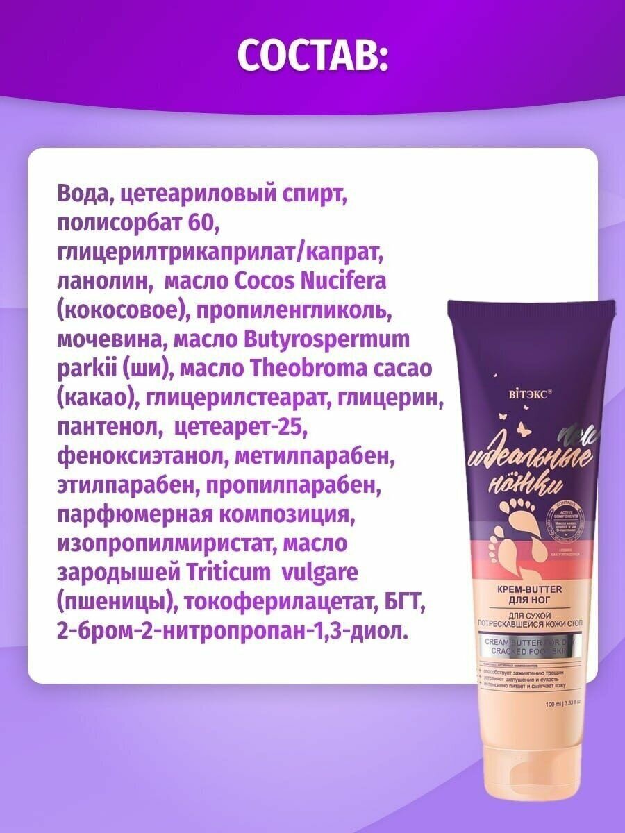 Витэкс Крем-butter для ног Идеальные ножки Для сухой и потрескавшейся кожи стоп, 100 мл интересное: