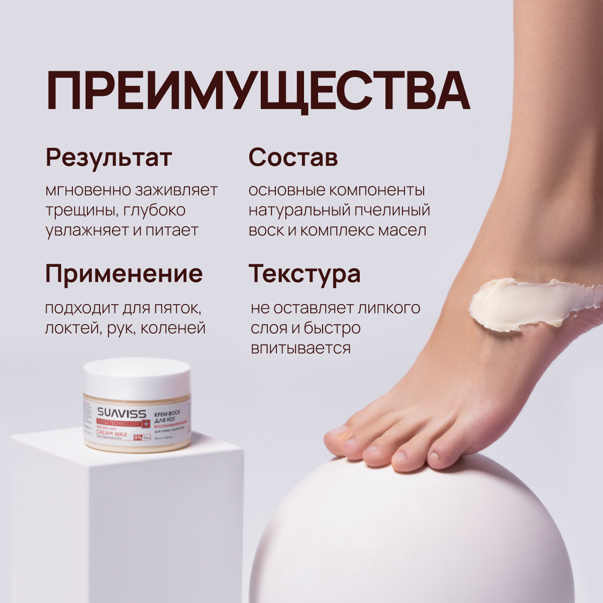 Крем воск для ног SUАVISS восстанавливающий от трещин и сухости, 100 мл интересное:
