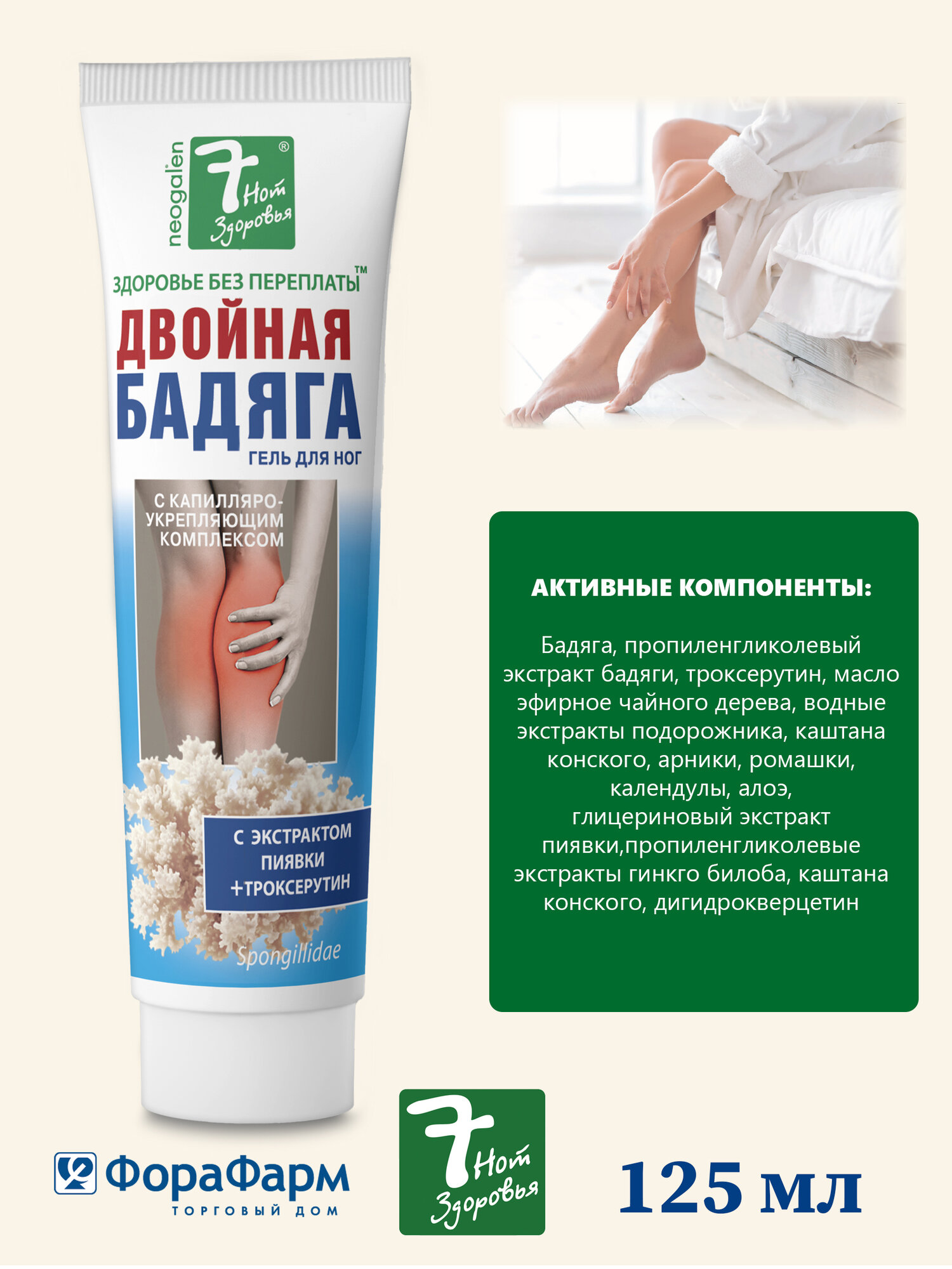 Гель для ног «Двойная бадяга с экстрактом пиявки и троксерутином» товарного знака «7 нот здоровья» 125 мл. НПО ФораФарм. Набор 2 шт. интересное: