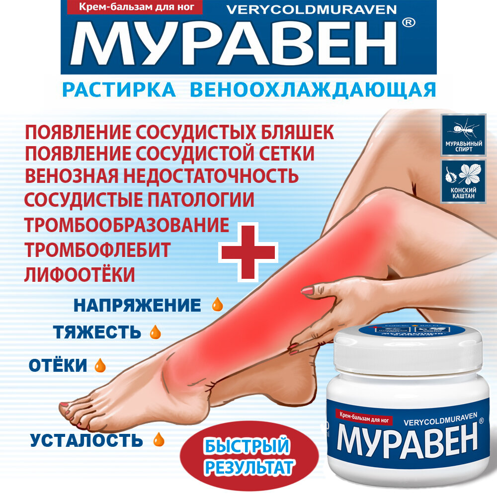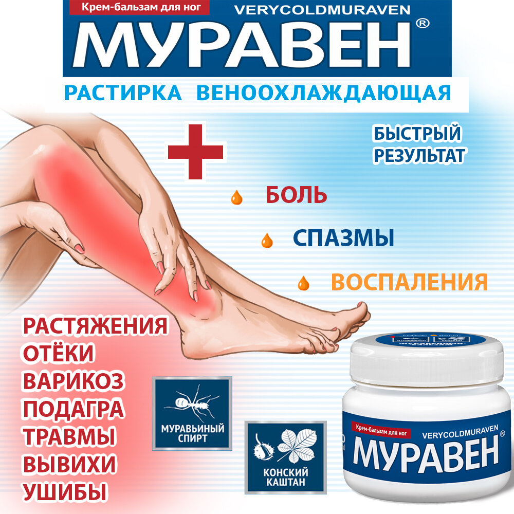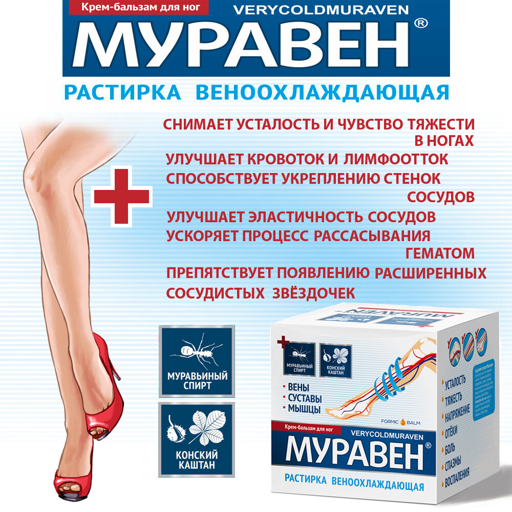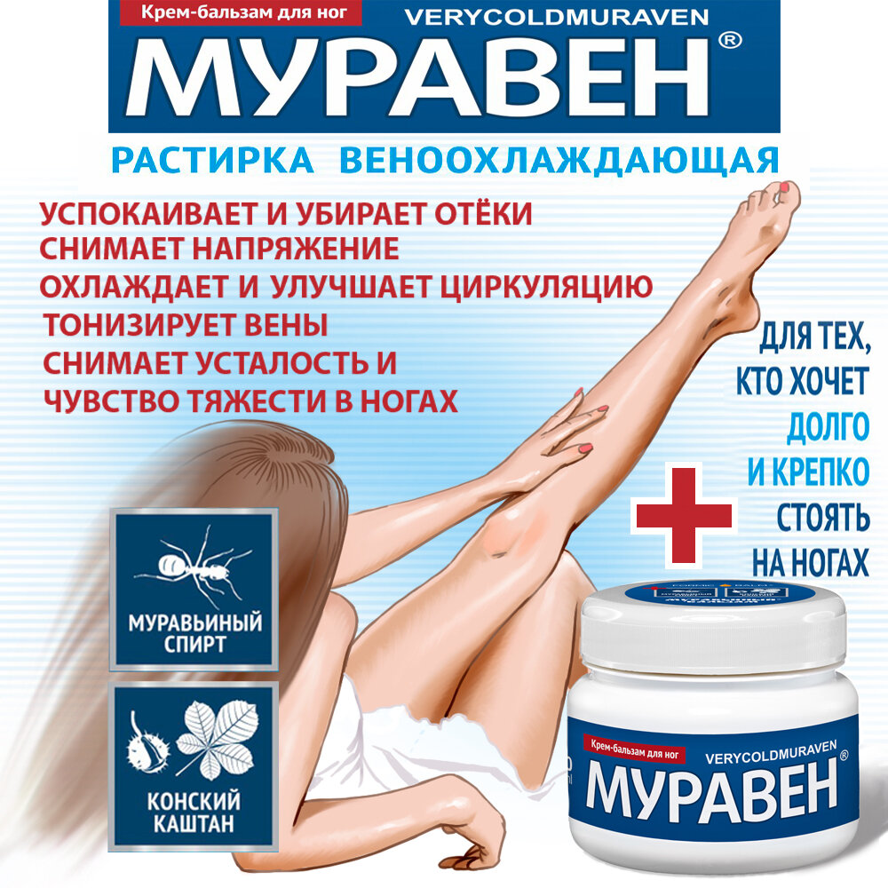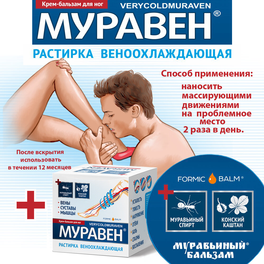 Крем-растирка для ног муравен с муравьиным спиртом и конским каштаном для суставов, вен, мышц 150 мл интересное:
