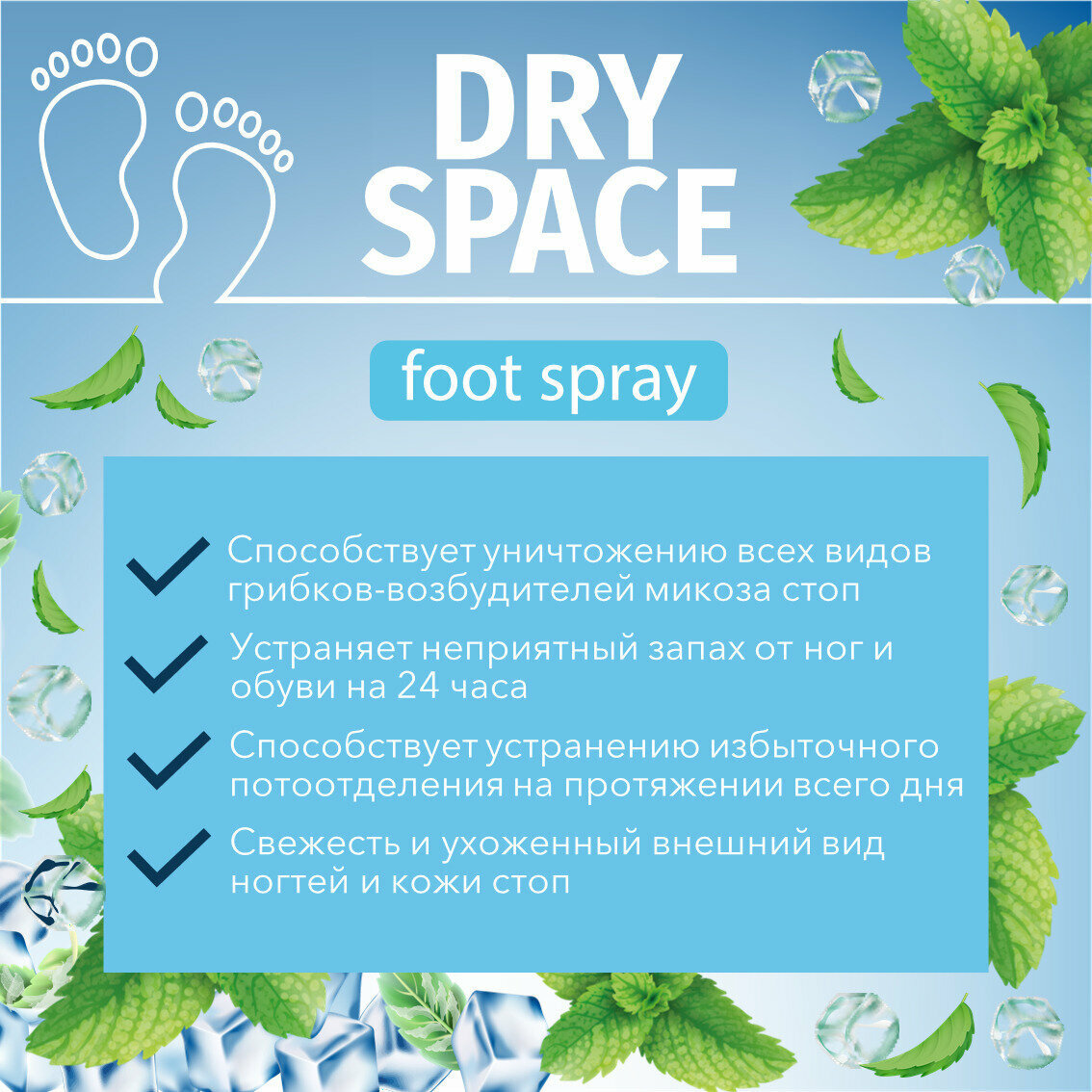 Dry Space спрей для ног от запаха и пота. Дезодорант для обуви от запаха. Спрей Драй спейс 150 мл способствует уменьшению потоотделения ног интересное: