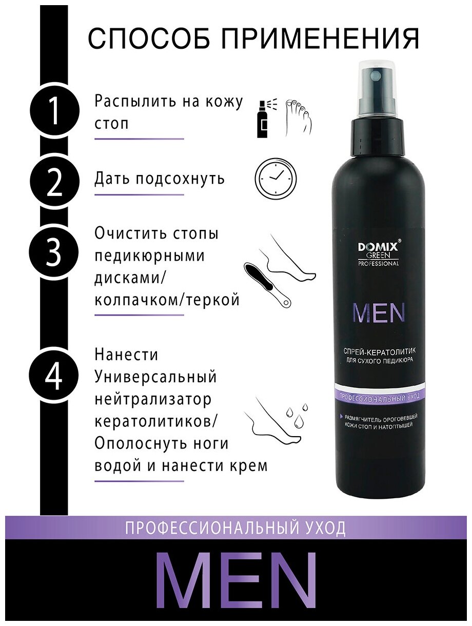 DOMIX Спрей-кератолитик для сухого педикюра с мочевиной и салициловой кислотой MEN, 250 мл интересное: