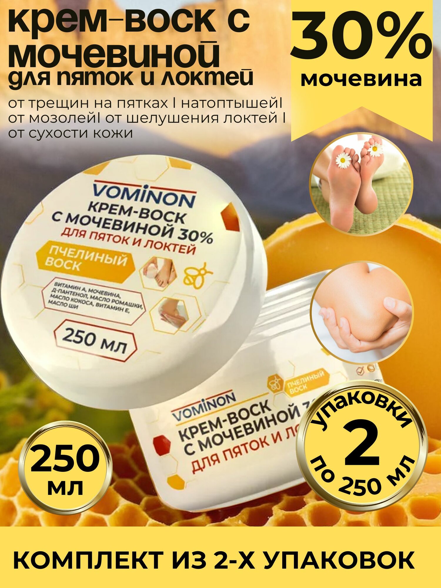 Крем воск с мочевиной 30% для пяток и локтей ВоМиНоН, 2 упаковки по 250 мл, комплект из 2х упаковок интересное: