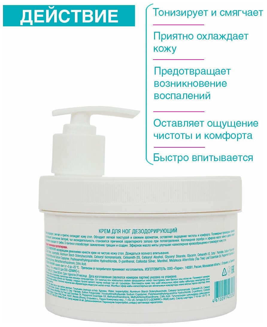 DOMIX Крем для ног дезодорирующий с серебром и маслом чайного дерева, 500 мл интересное:
