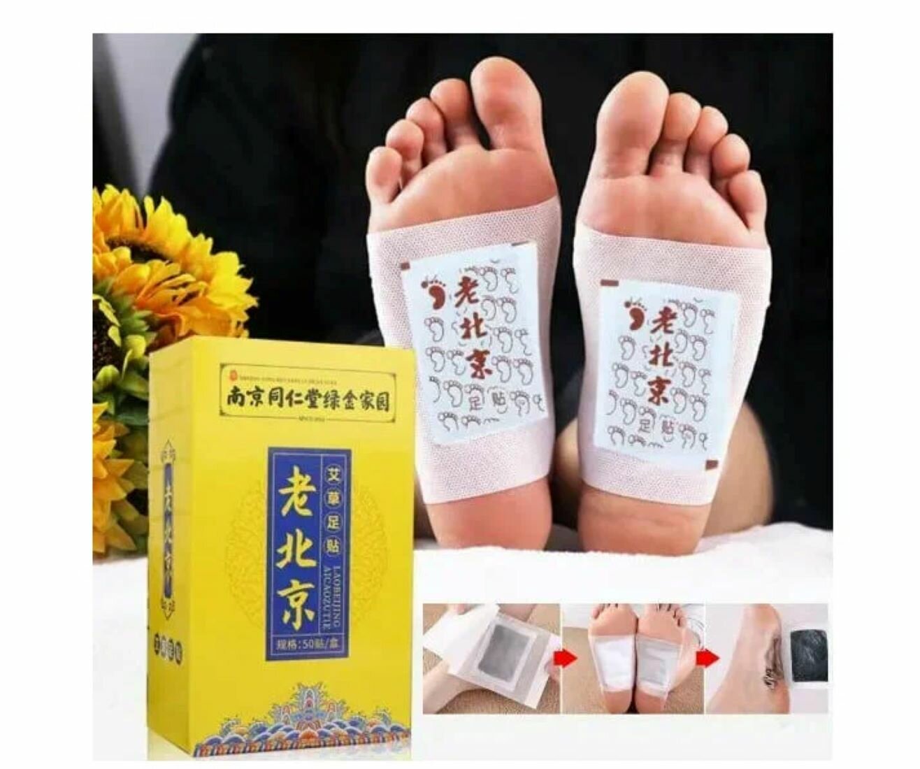 Патчи детокс с полынью для здоровья ног "Lao Bei Jing", патчи детокс для ног, 50 пластырей в упаковке интересное: