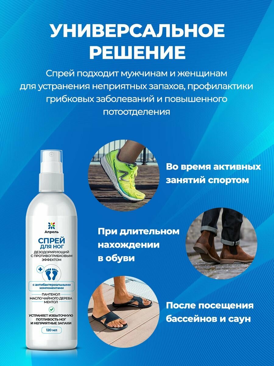 Спрей защитный для ног Апрель, с антибактериальным действием, 100 мл, 3 шт интересное: