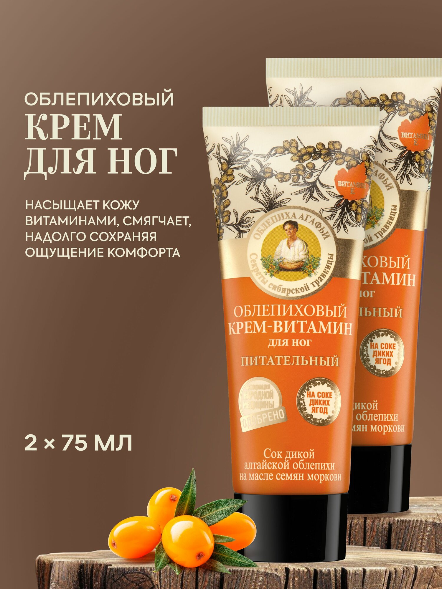 Купить Рецепты бабушки Агафьи Облепиховый Крем для ног и пяток питательный смягчающий увлажняющий с витамином Е и мочевиной 2 шт х 75 мл