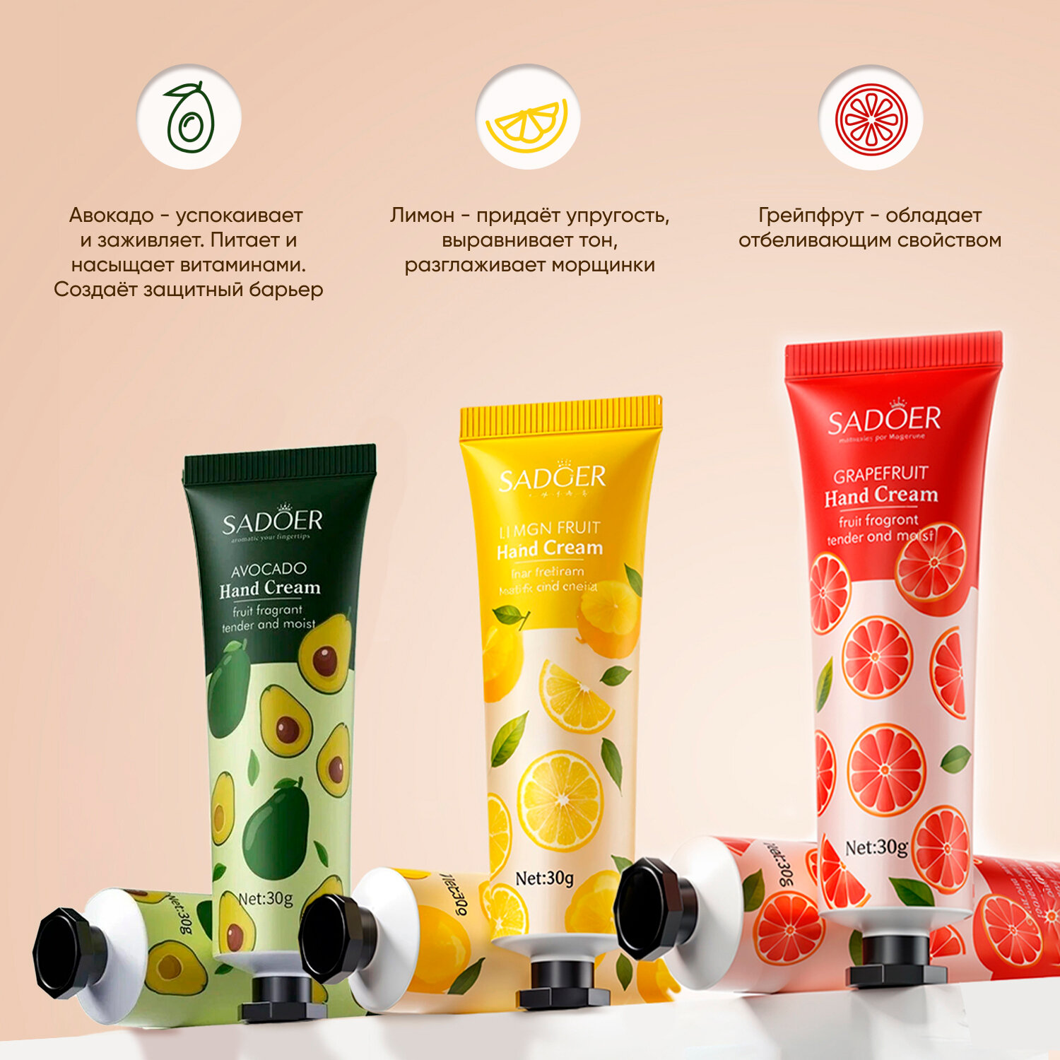 Увлажняющий крем для рук Sadoer с экстрактом грейпфрута 30 гр. х 3 шт.