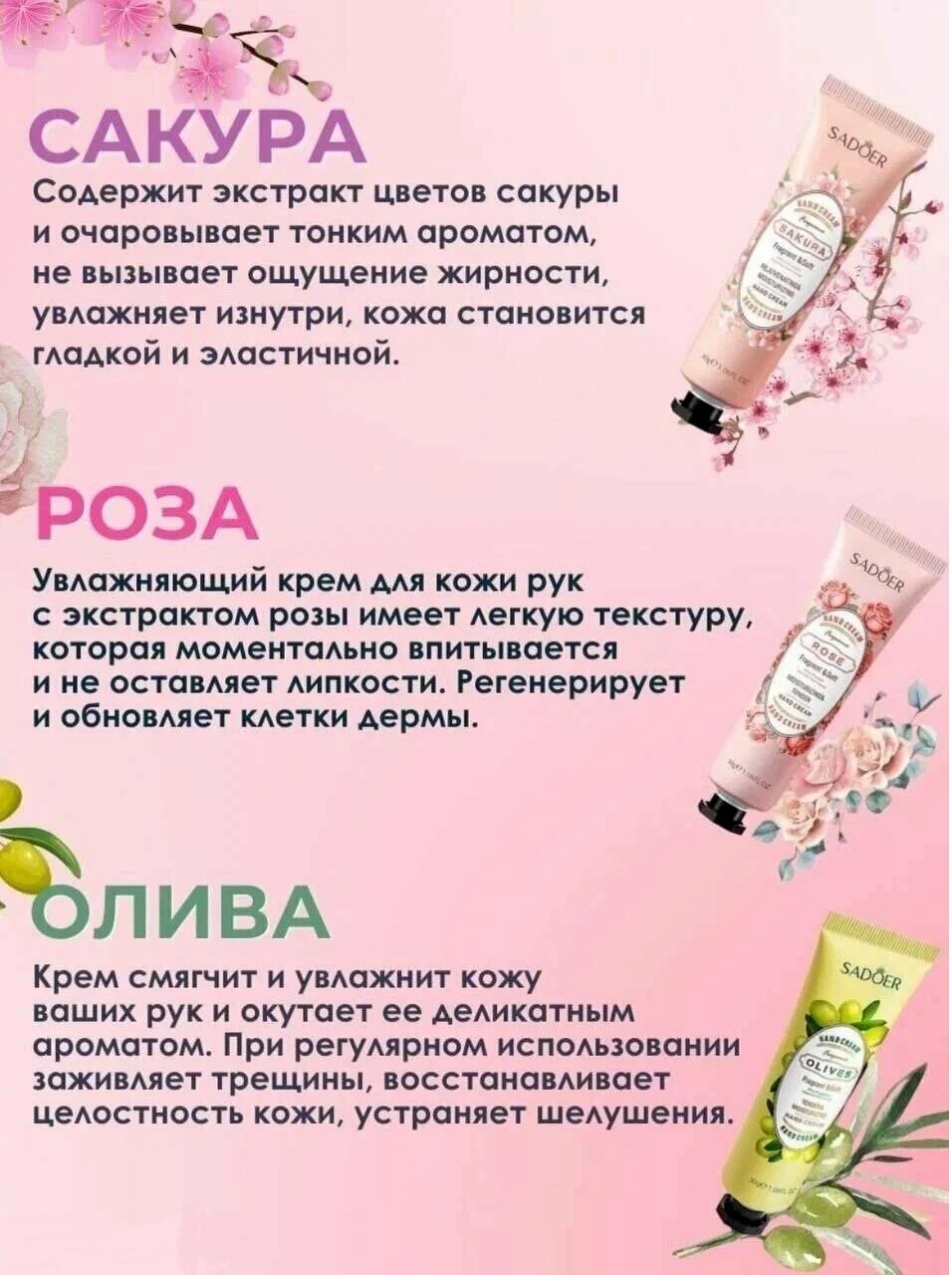 Купить Набор кремов для рук SADOER цветы и фрукты 5 в 1 30мл
