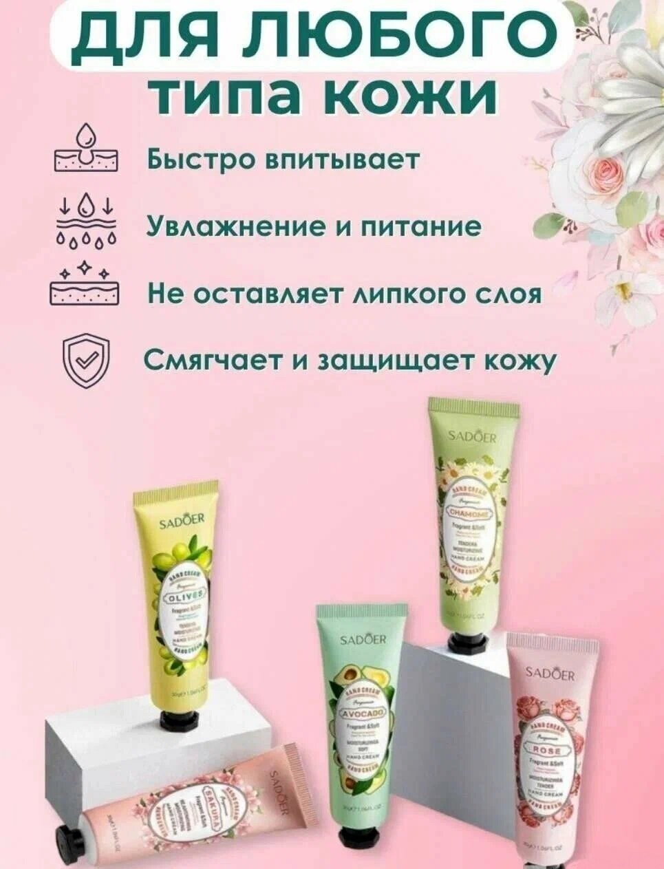 Ниже Вы можете прочитать отзывы на Набор кремов для рук SADOER цветы и фрукты 5 в 1 30мл, ознакомится с подробными характеристиками, посмотреть интересные обзоры и фотографии на Набор кремов для рук SADOER цветы и фрукты 5 в 1 30мл.