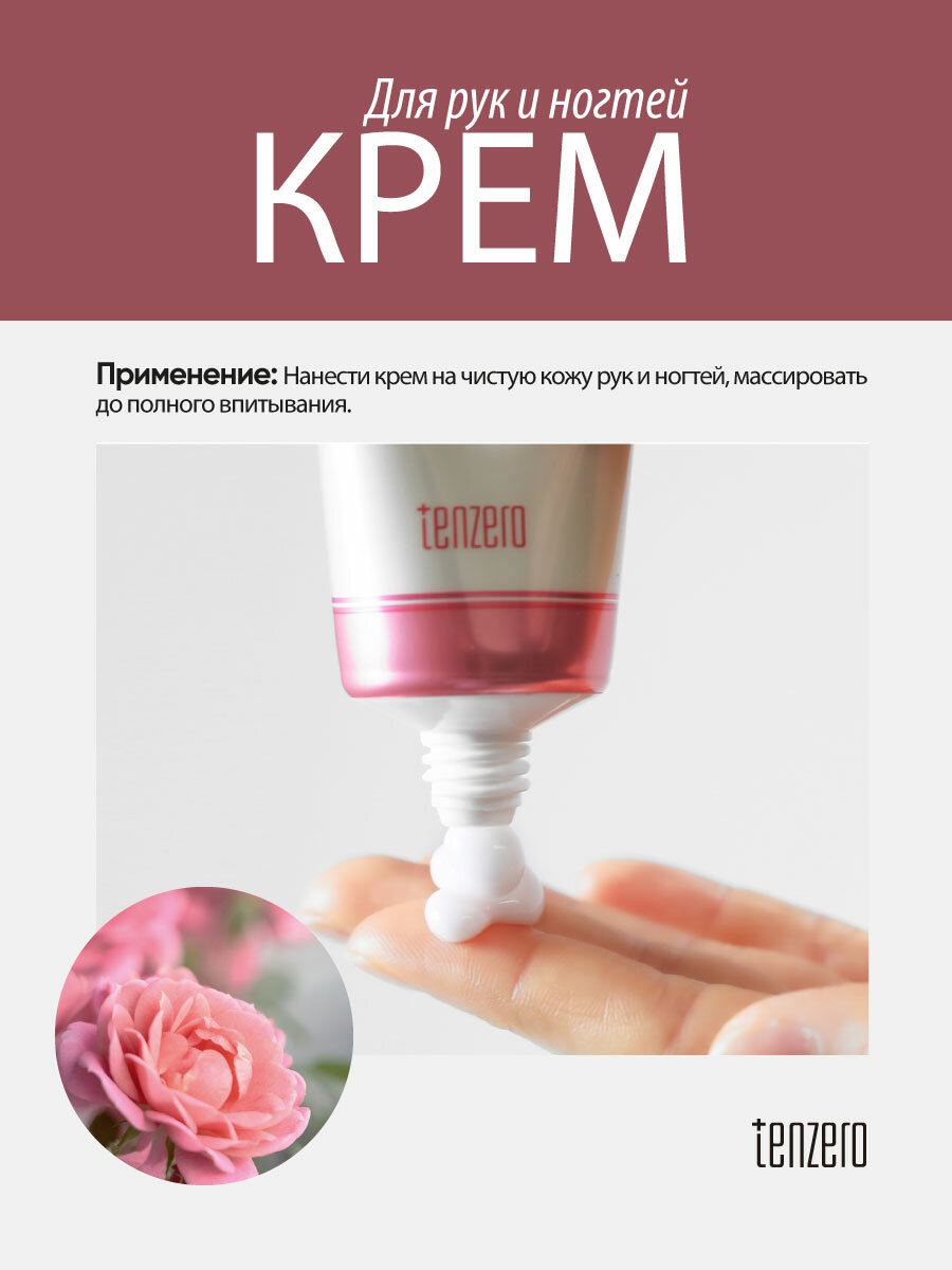 Крем для рук и ногтей Tenzero с ароматом розы, 50 мл