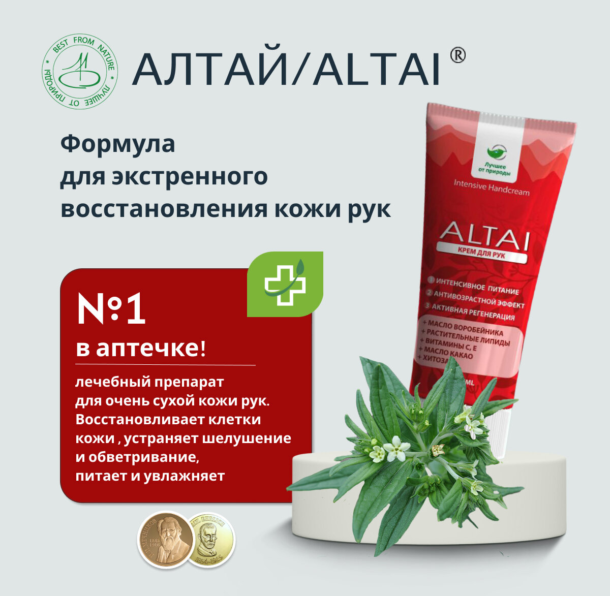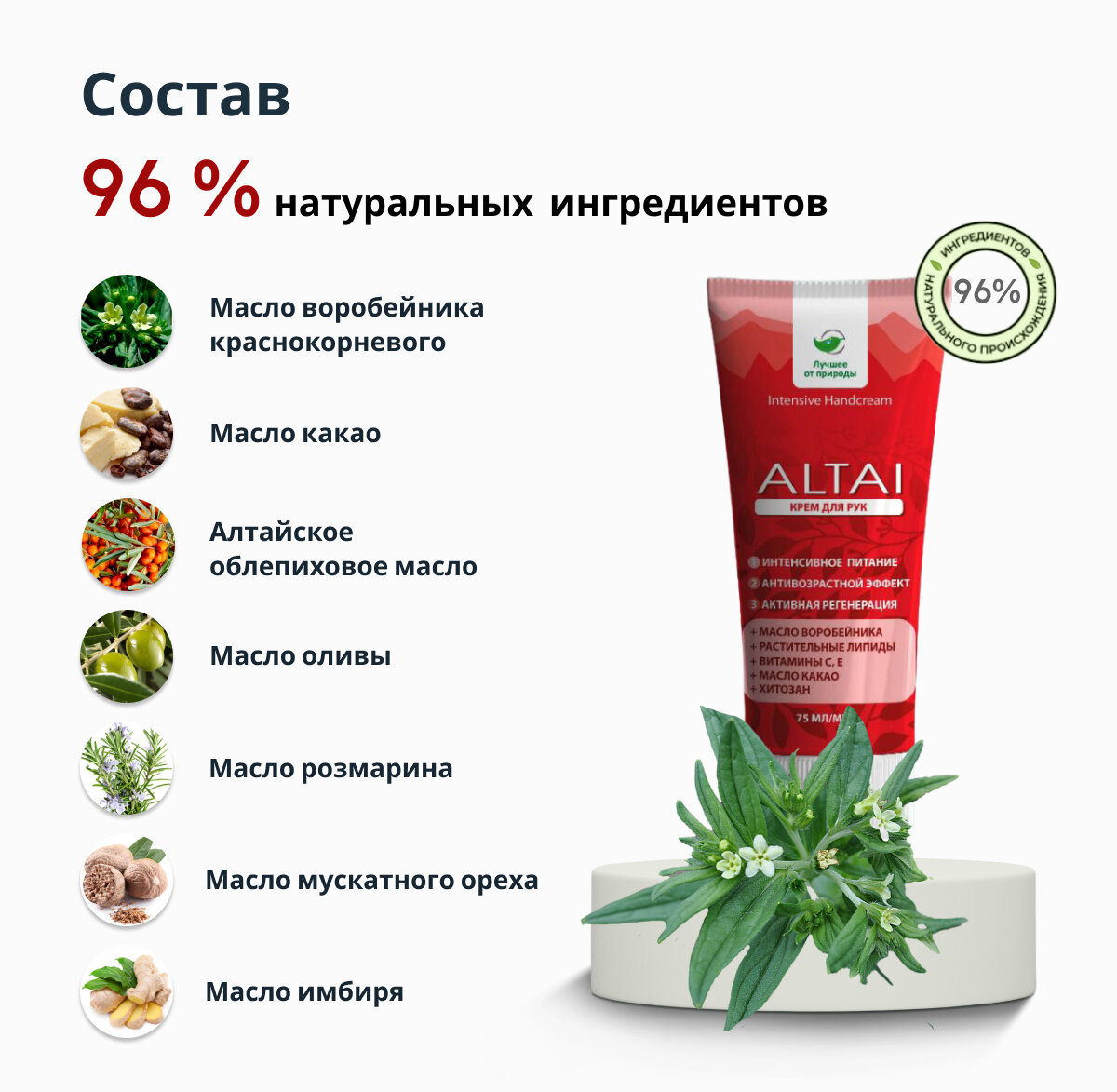 Крем для рук Алтай омолаживающий, увлажняющий, питательный, без искусственных красителей, 75мл интересное: