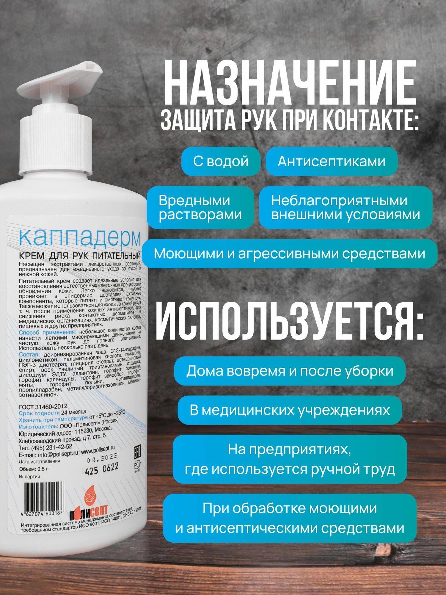 Крем для рук с дозатором Каппадерм 500мл/ питательный/ восстанавливающий/ заживляющий интересное: