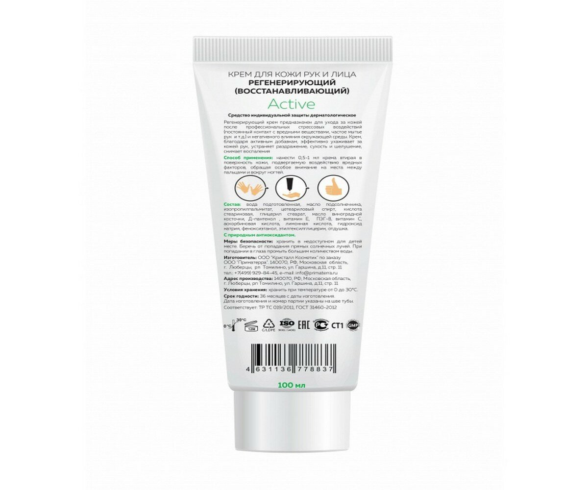 Крем для кожи рук и лица регенерирующий (восстанавливающий) M SOLO ACTIVE, 100 мл интересное: