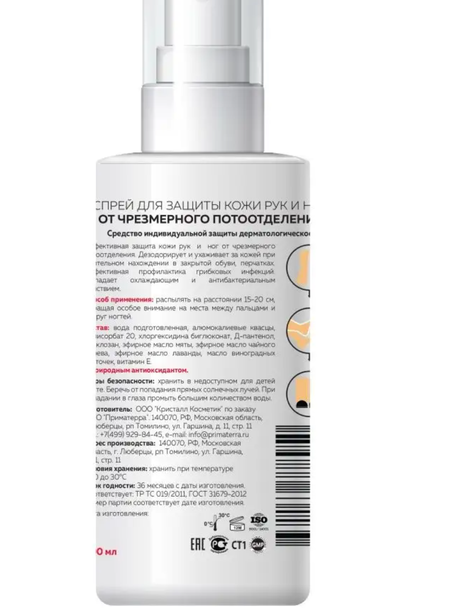 Спрей для защиты кожи рук и ног от чрезмерного потоотделения TM Primaterra M Solo Foot, 100 мл интересное: