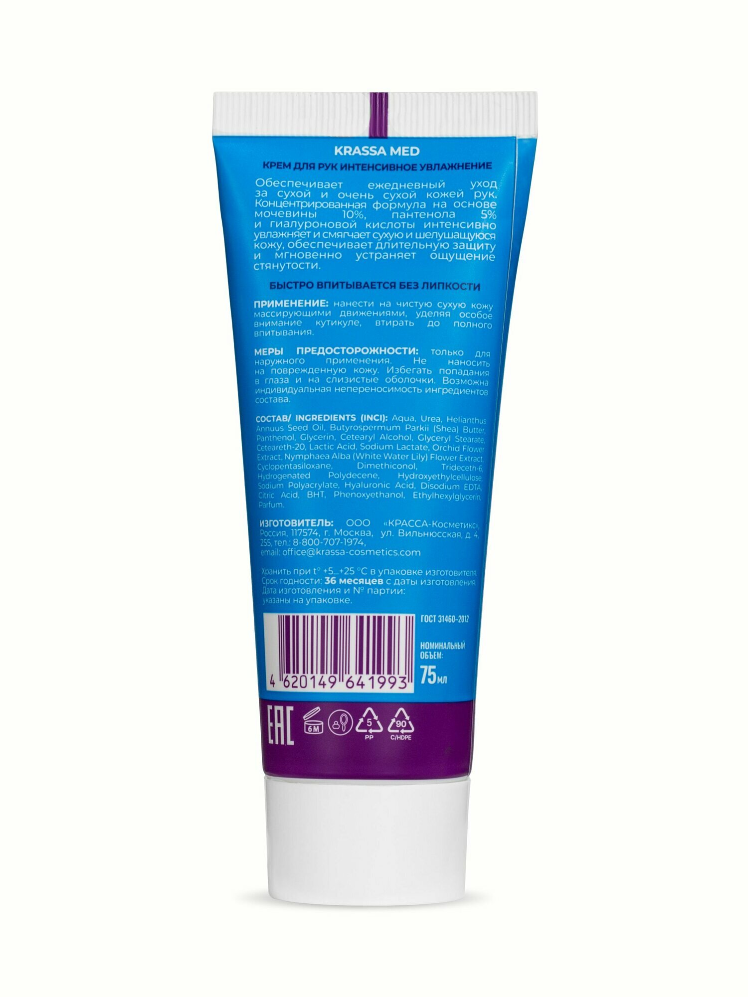 Крем для рук увлажняющий. KRASSA MED 10% Мочевины, 5% Пантенол, 0% силиконов. интересное:
