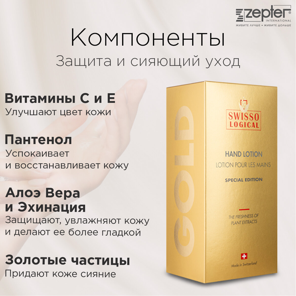 Купить Крем-лосьон для рук и тела SWISSO LOGICAL GOLD увлажняющий с пантенолом и алоэ вера/ 300 мл от Zepter