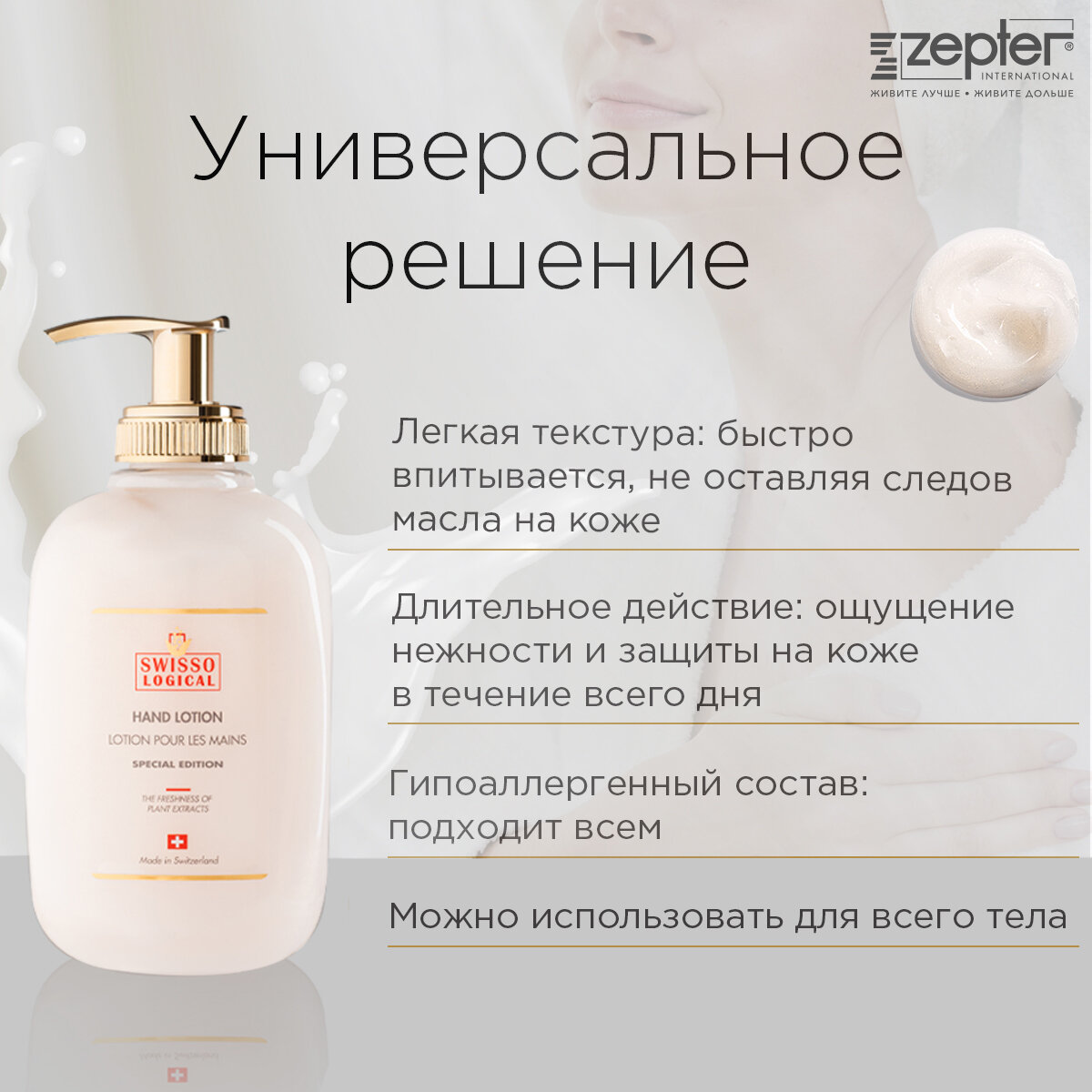 Крем-лосьон профессиональный SWISSO LOGICAL для тела и рук, увлажняющий и питательный/ 300 мл от Zepter.