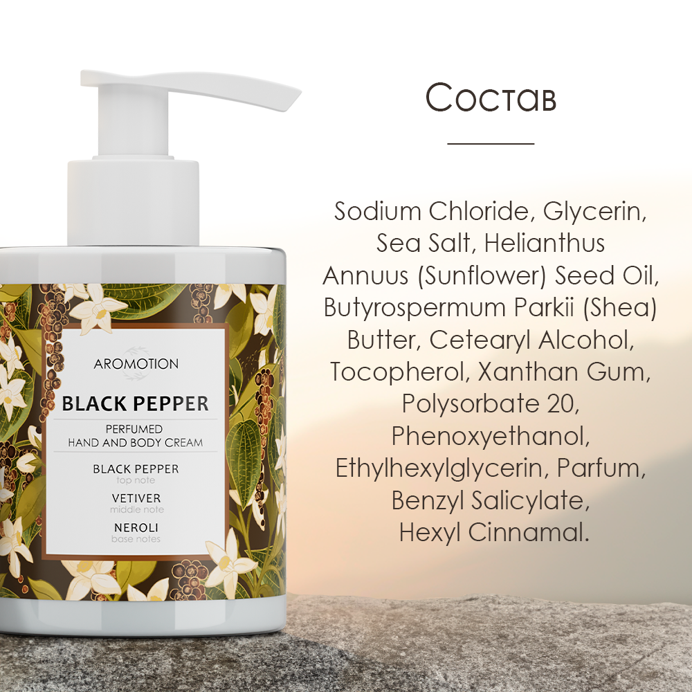 AROMOTION Парфюмированный крем для тела и рук с ароматом "Black Pepper", увлажняющий, 300 мл интересное: