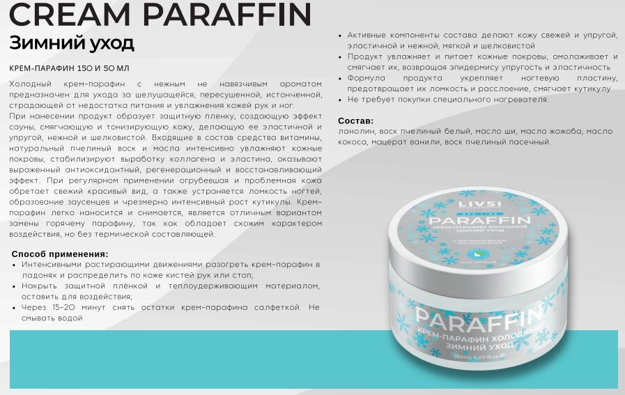 ФармКосметик / Livsi, Cream paraffin - крем парафин для рук и ног (Зимний уход), 150 мл интересное: