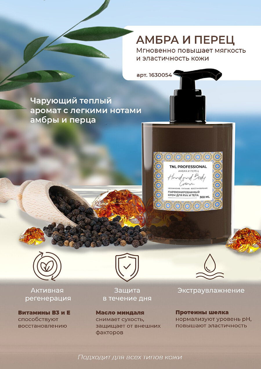 Купить TNL, Hand & Body Cream - парфюмированный крем для рук и тела (Амбра и перец), 300 мл