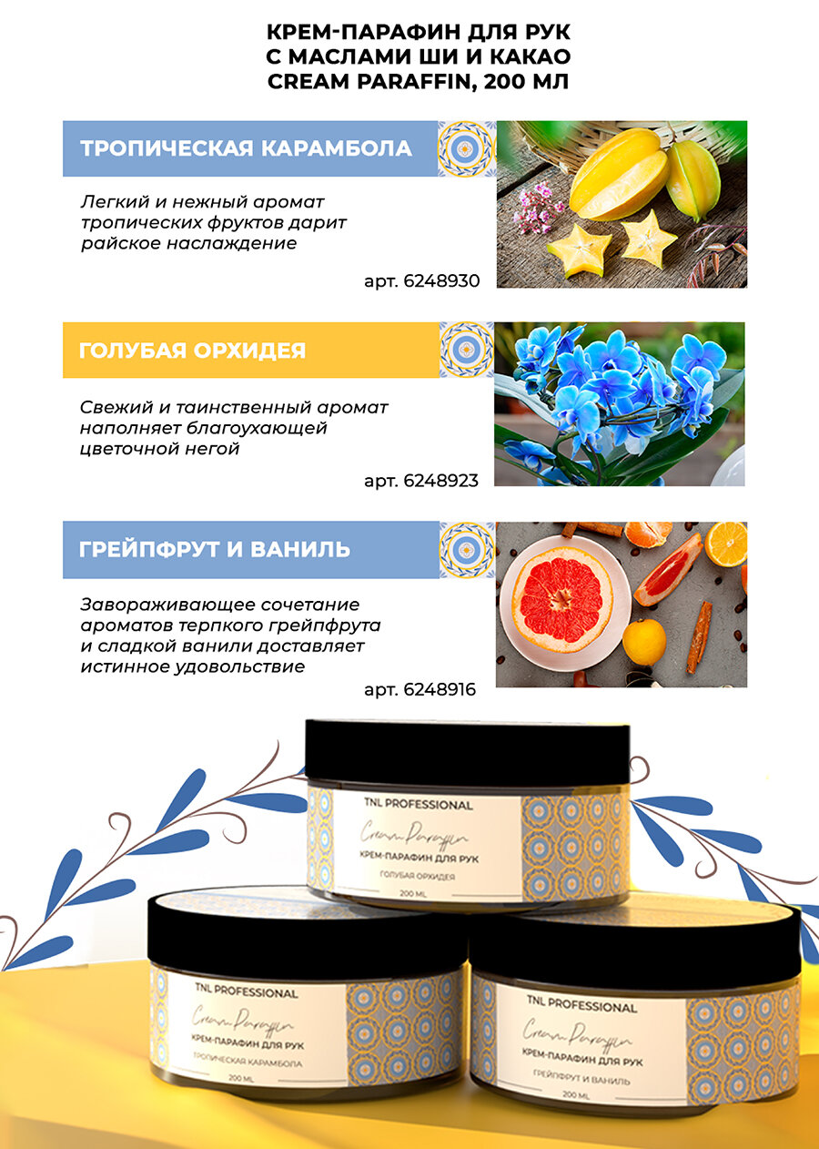TNL, крем-парафин для рук с маслами ши и какао с ароматом "Тропическая карамбола", 200 мл