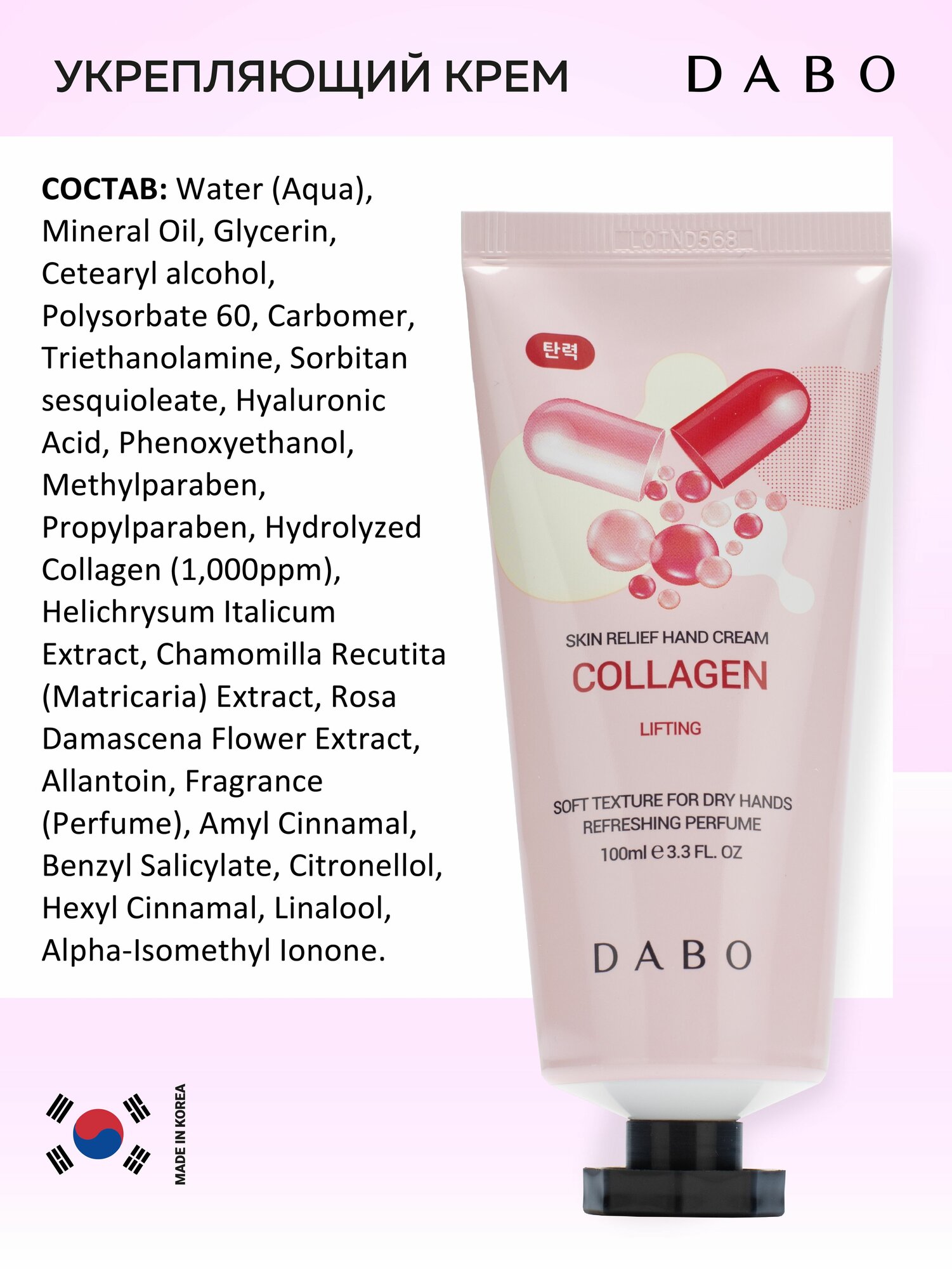 DABO Укрепляющий крем для рук с гидролизованным коллагеном, корейская косметика 100мл Skin Relief Hand Cream Collagen интересное: