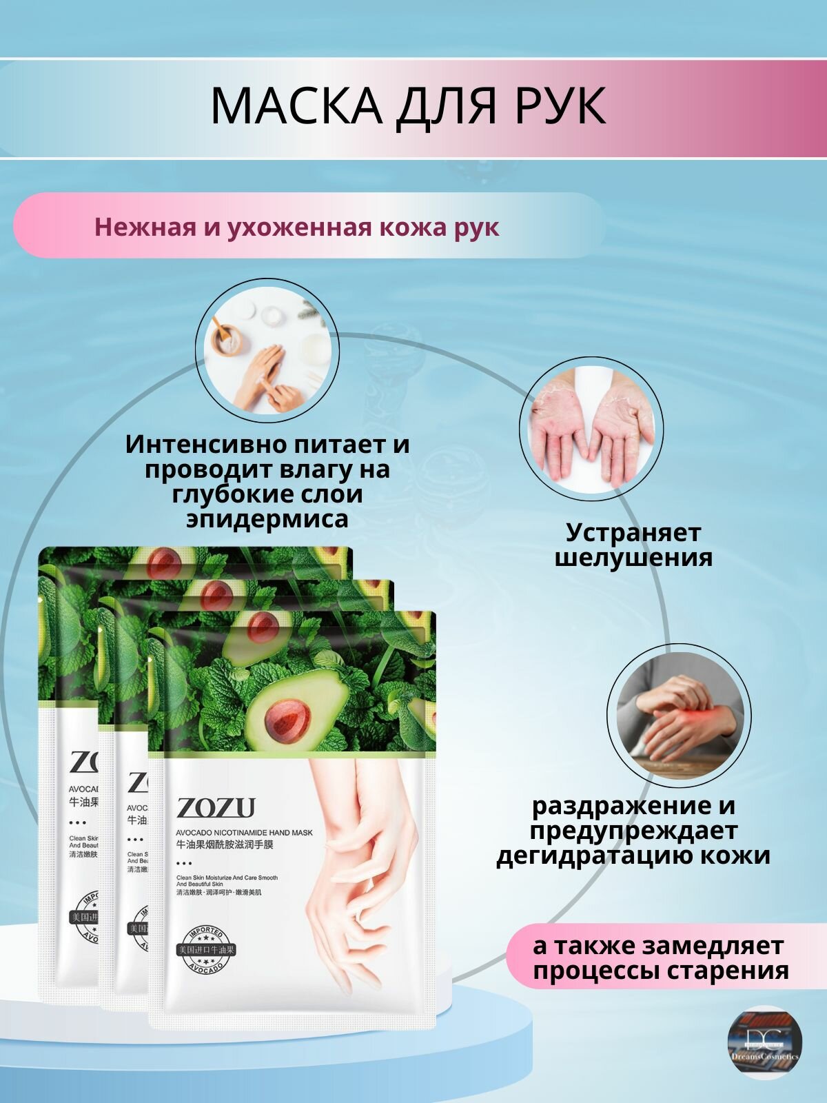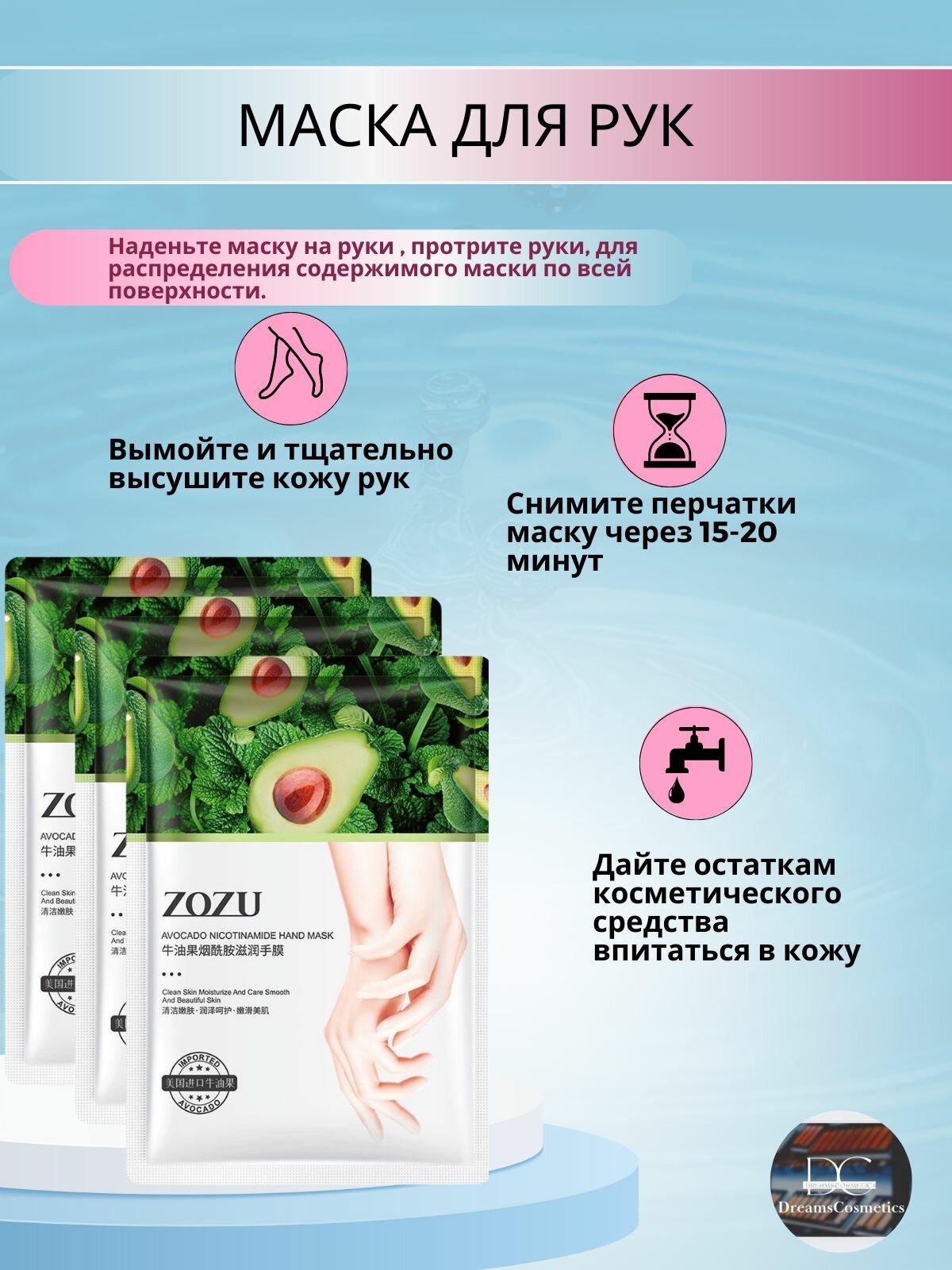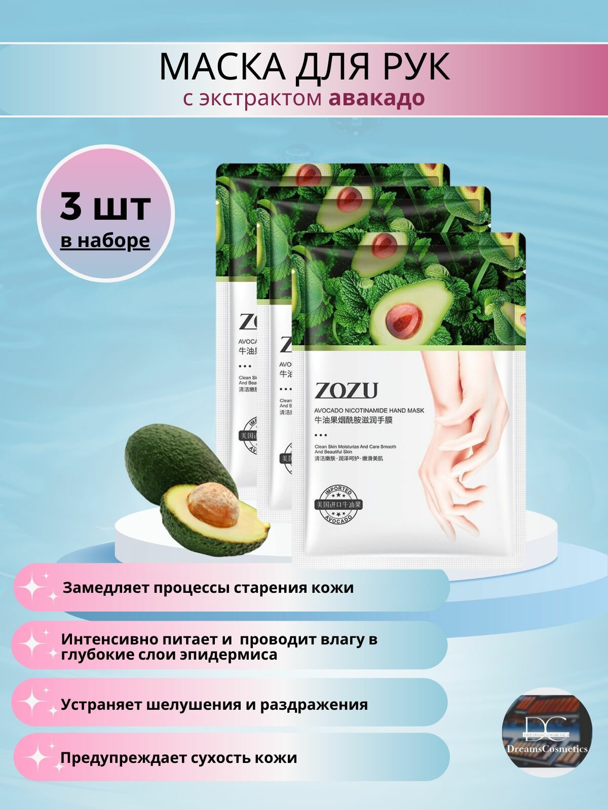 ZOZU Маска-перчатки для рук с экстрактом Авокадо и никотинамидом для глубокого увлажнения 3 шт интересное: