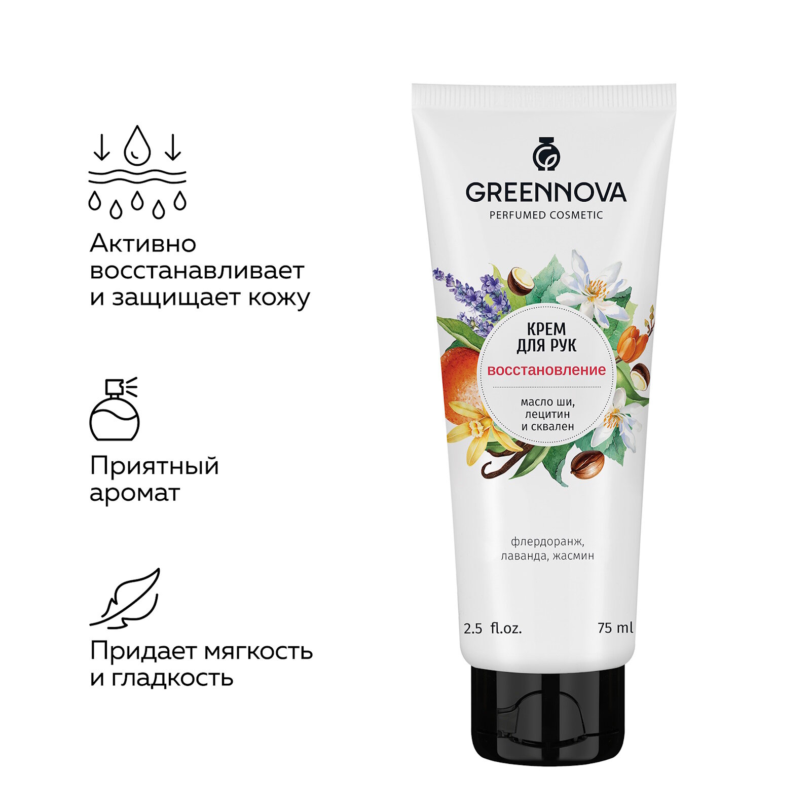 Парфюмированный крем для рук GREENNOVA восстанавливающий 75 мл