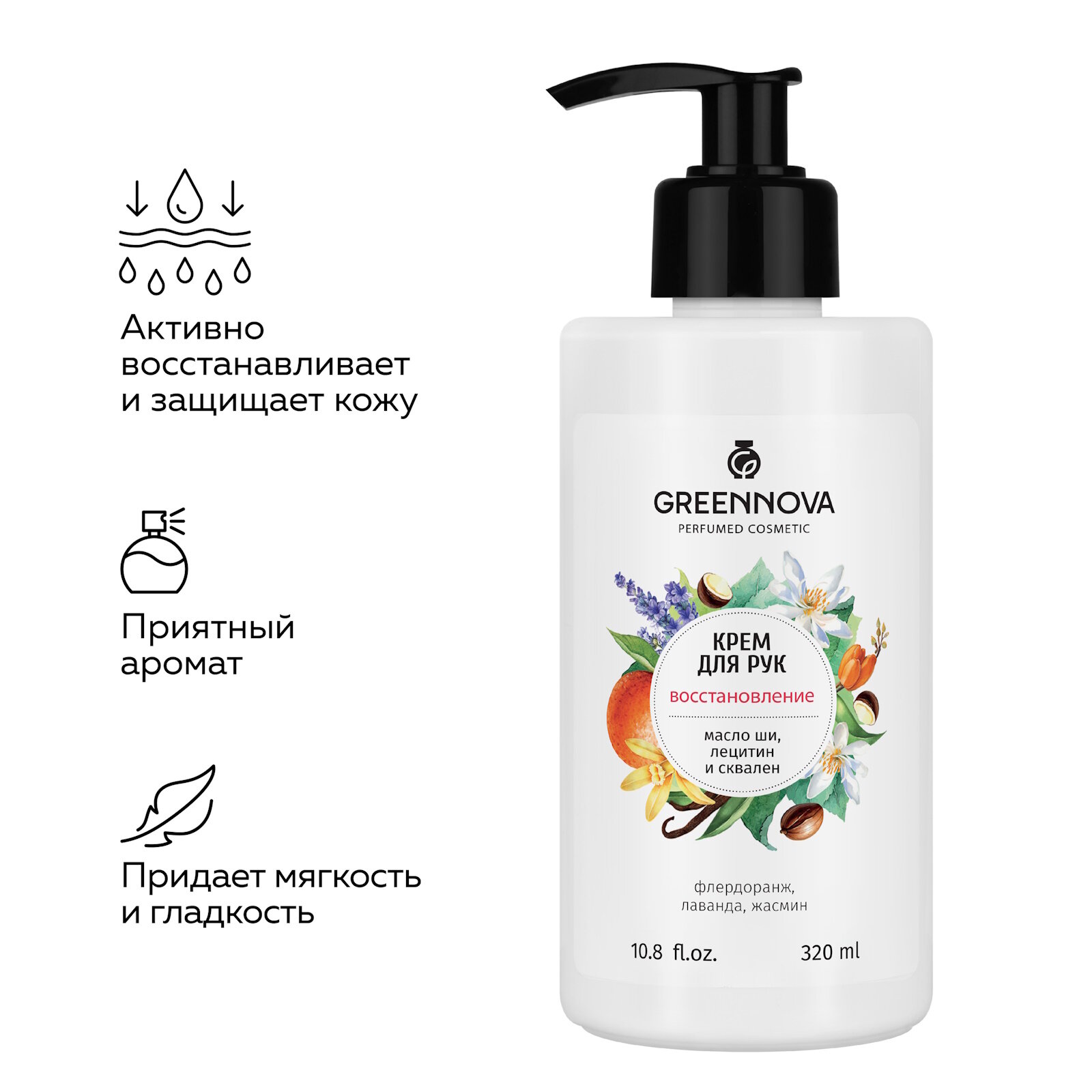 Парфюмированный крем для рук GREENNOVA восстанавливающий 320 мл