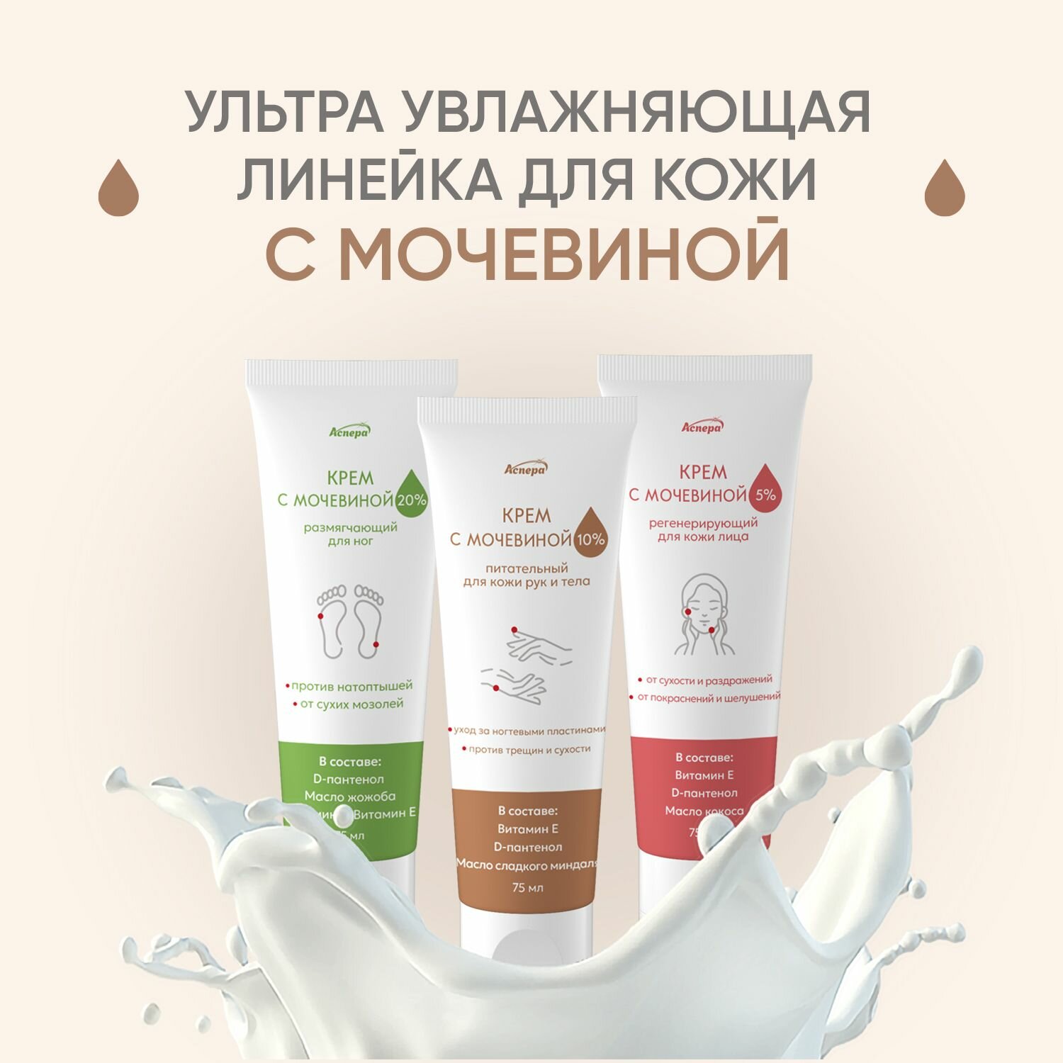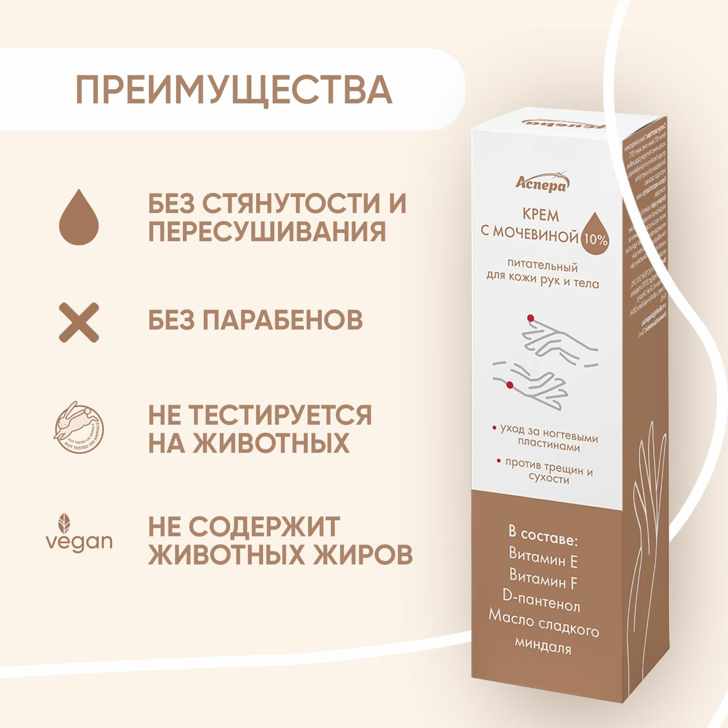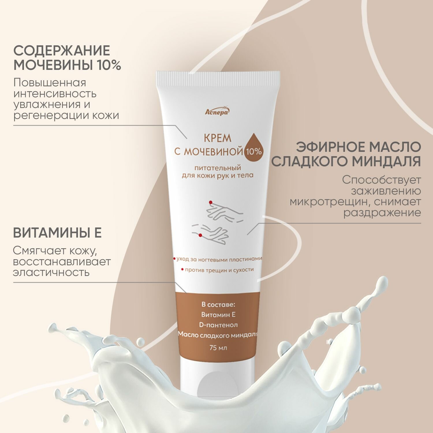 Крем с мочевиной для рук и тела 10% косметический питательный Аспера, 75 мл интересное: