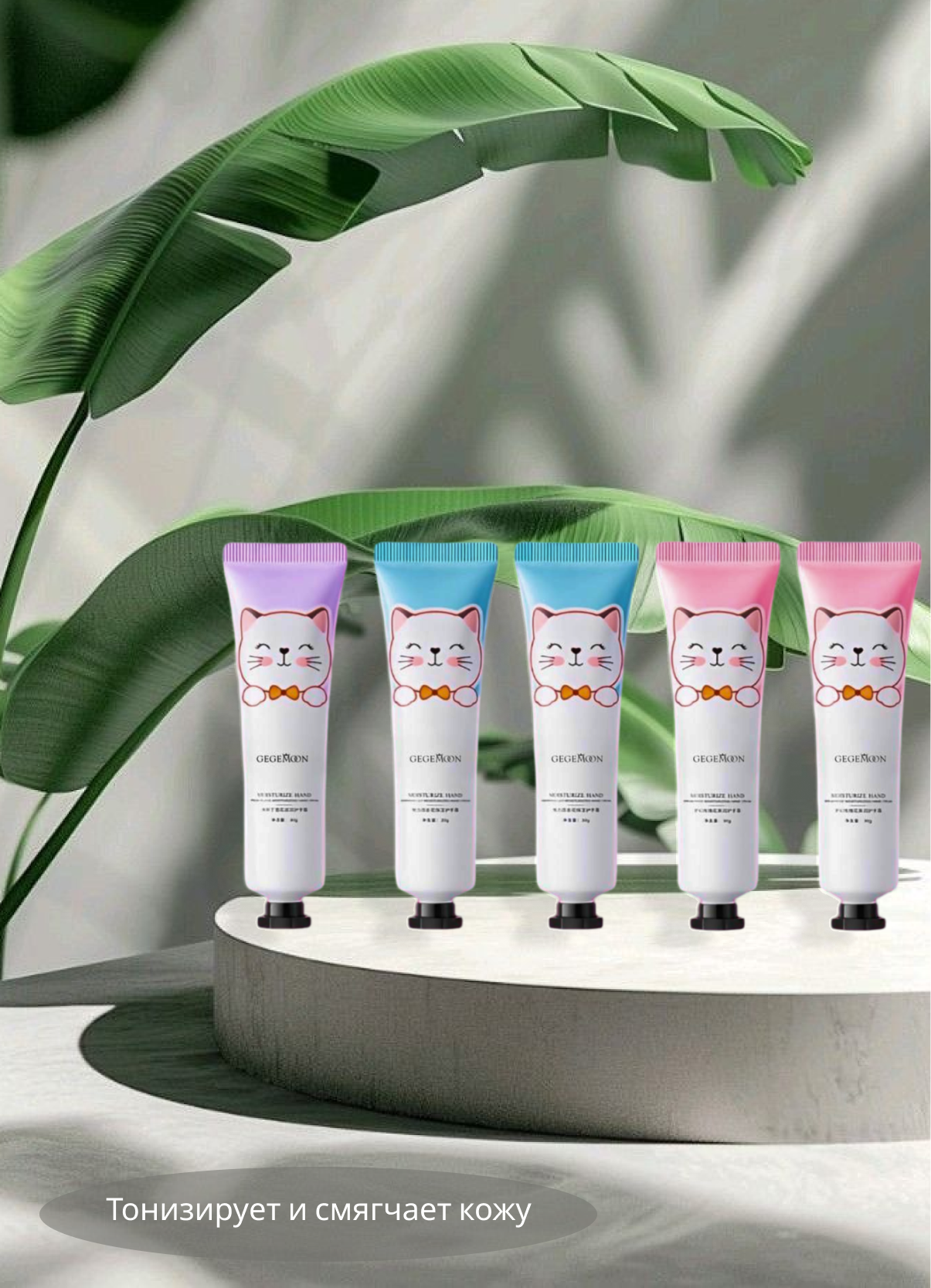 Крем для рук увлажняющий GEGEMOON Beautecret cute moisturize cat hand cream 5шт по 30мл интересное: