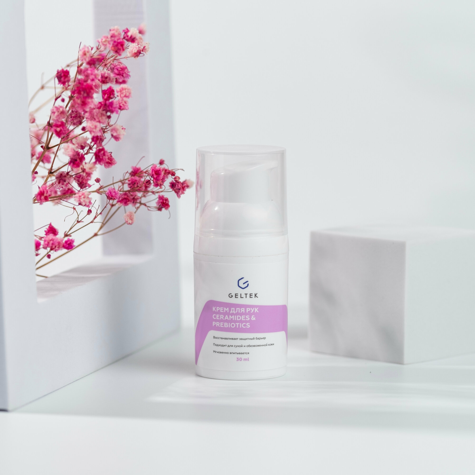 Гельтек Крем для рук питательный Ceramides&Prebiotics, с маслом ши и миндаля, 240 мл