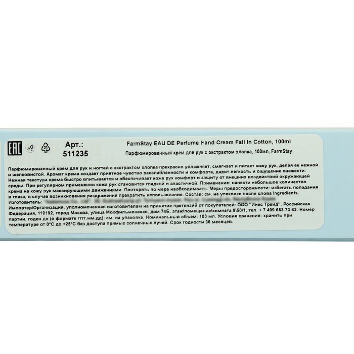 FarmStay Парфюмированный крем для рук FarmStay с экстрактом хлопка, 100 мл интересное: