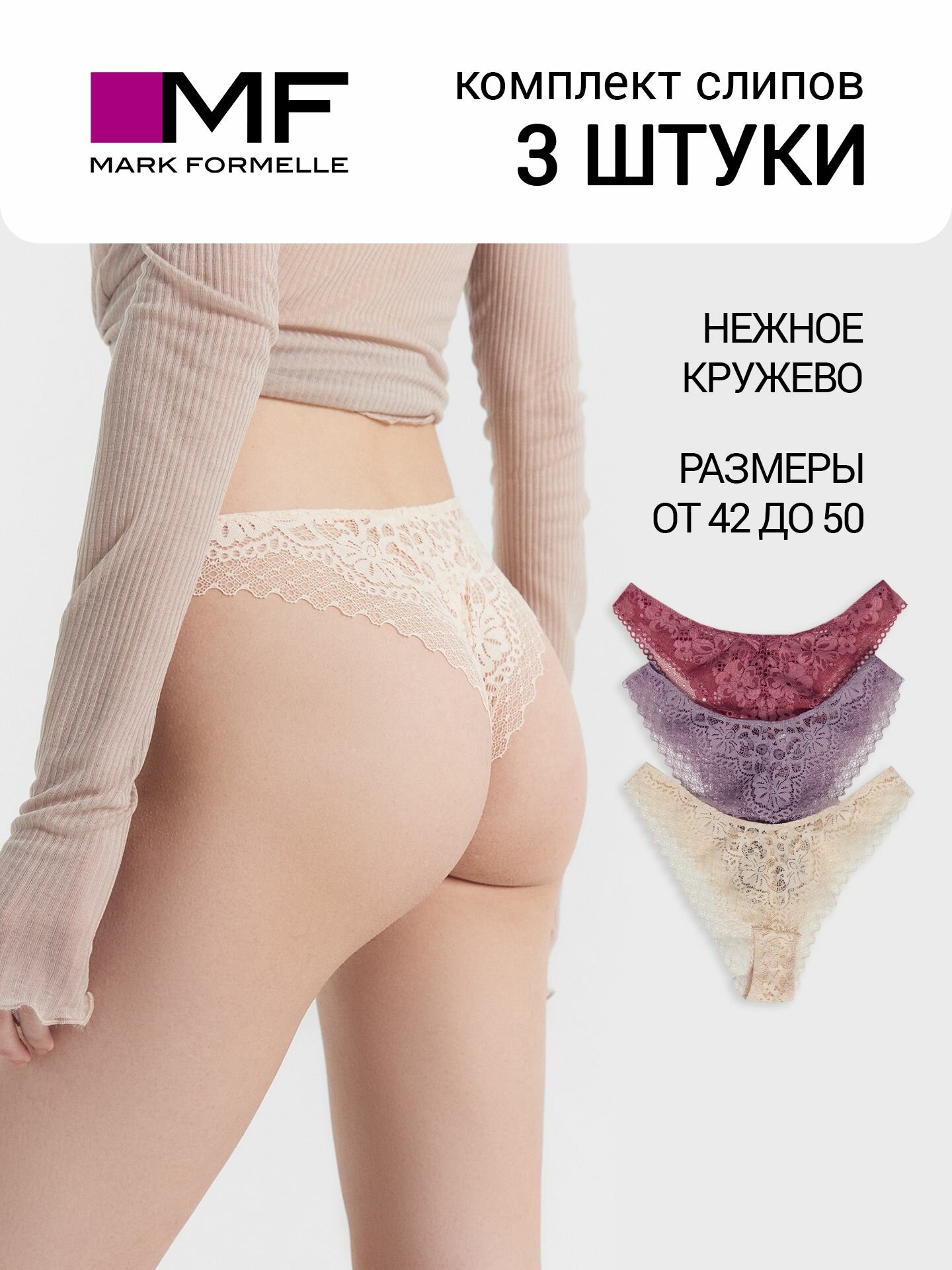 Трусы MARK FORMELLE Нижнее белье, размер M, бежевый, фиолетовый, розовый интересное: