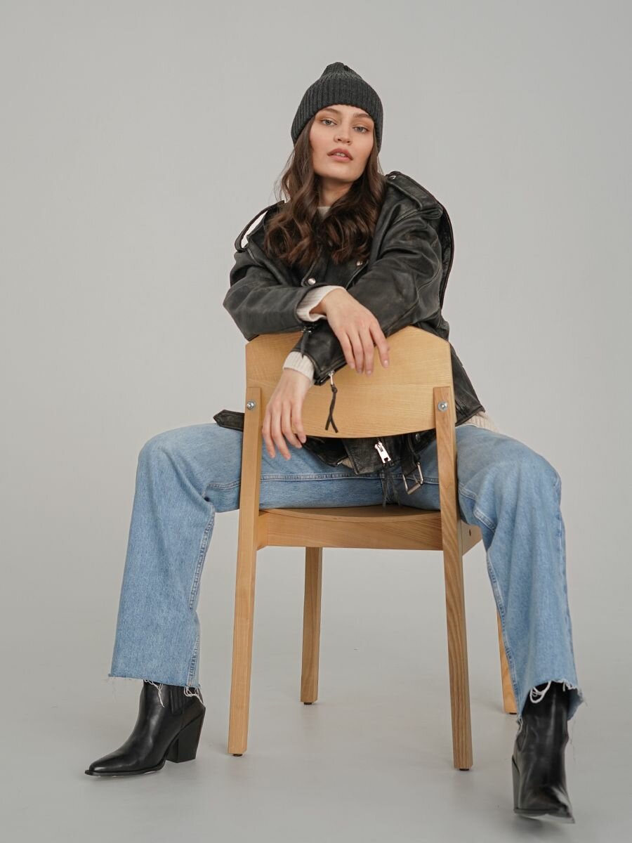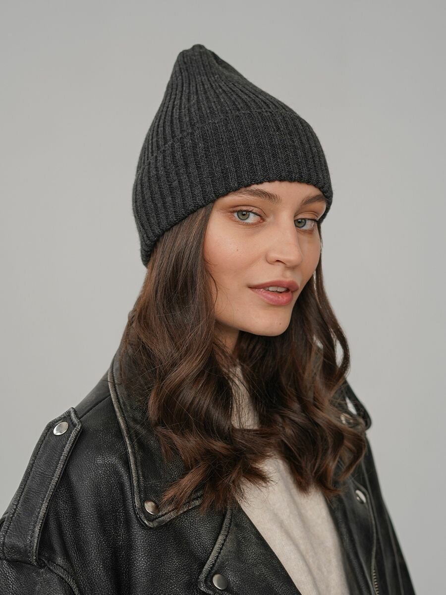 Шапка-бини JUMBI Шапка женская демисезонная зимняя вязаная с отворотом для взрослых и детей, размер 47-52, черный меланж интересное: