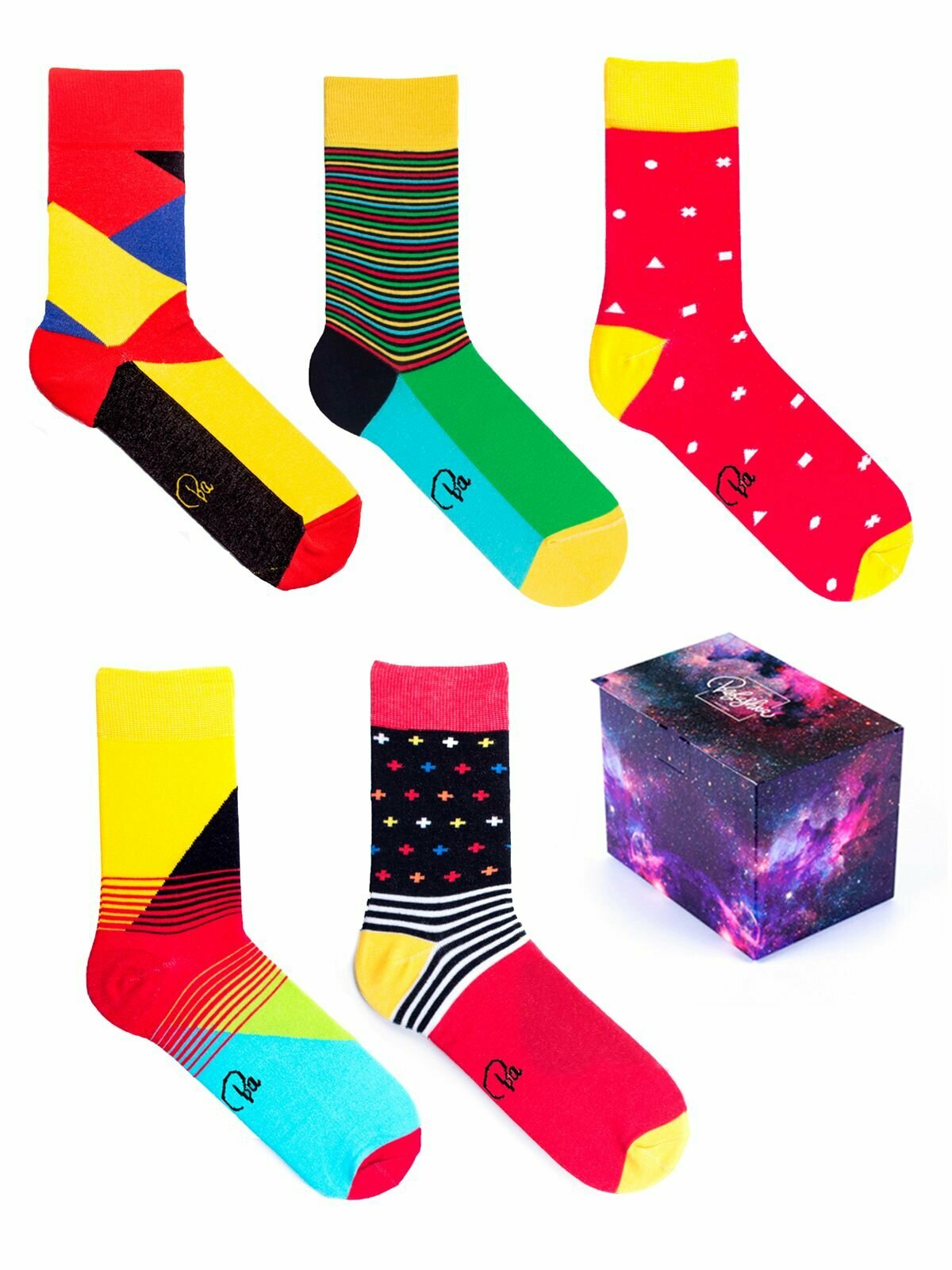 Носки Babushka Базовая коллекция, комплект, 5 пар, размер 41-45, голубой, красный, желтый