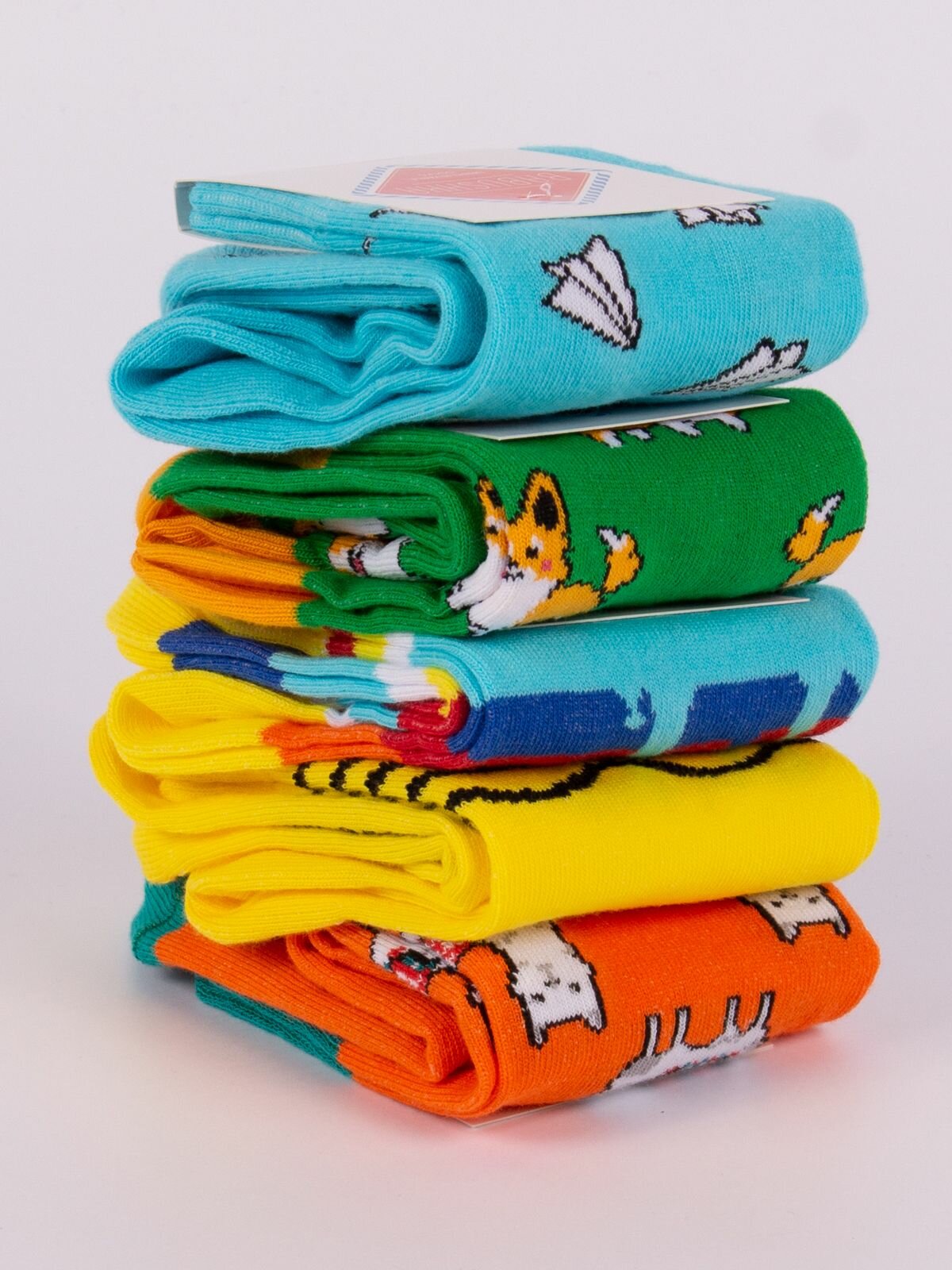 Носки Babushka, комплект, 5 пар, размер 33-36, голубой, желтый, зеленый