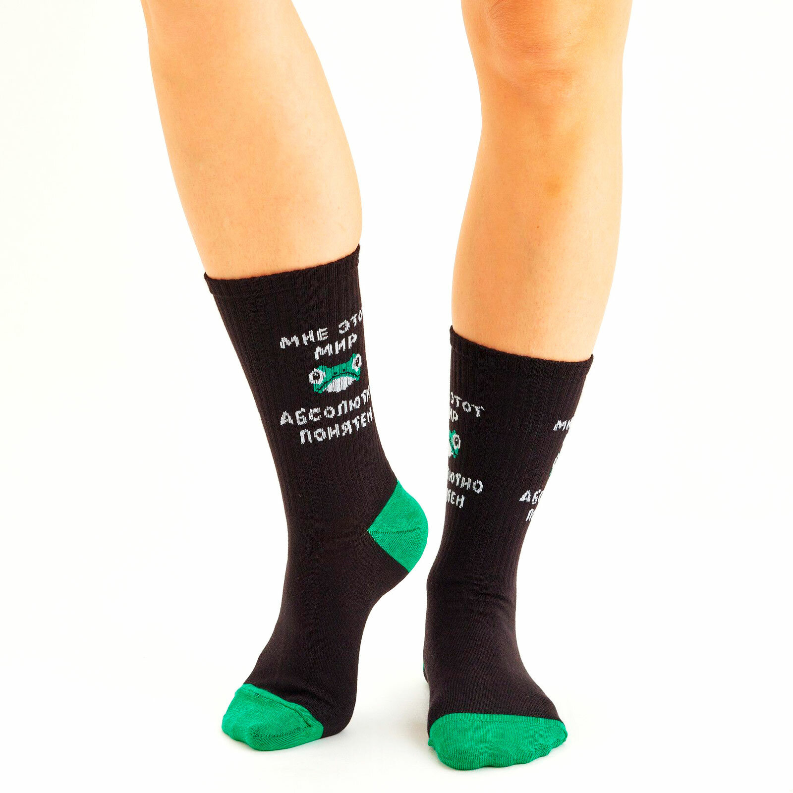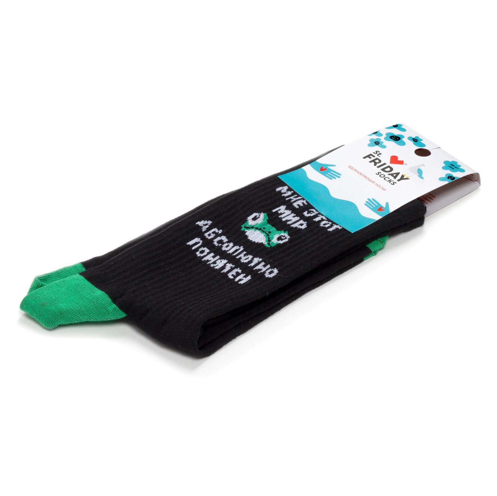 Носки St. Friday Носки с рисунками St.Friday Socks - Мне этот мир абсолютно понятен, размер 42-46, черный, зеленый, серый