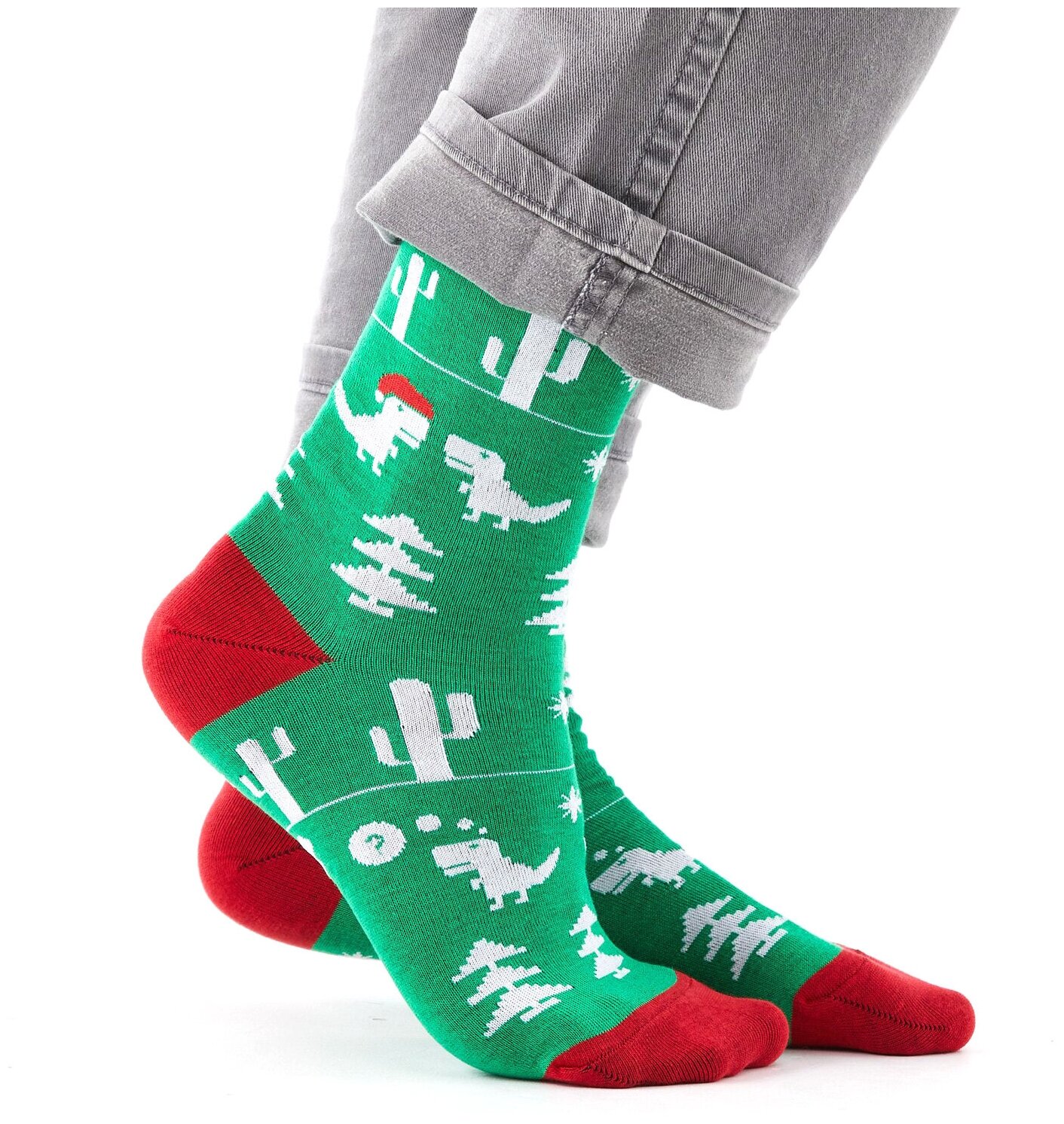Купить Носки St. Friday Новогодние носки Дино-санта, размер 42-46, зеленый