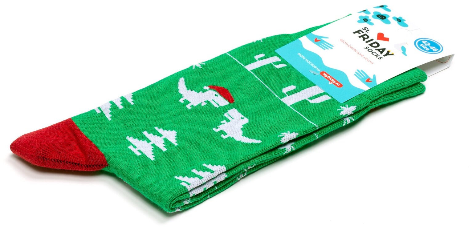 СохранитьНоски St. Friday Новогодние носки Дино-санта, размер 42-46, зеленый интересное:
