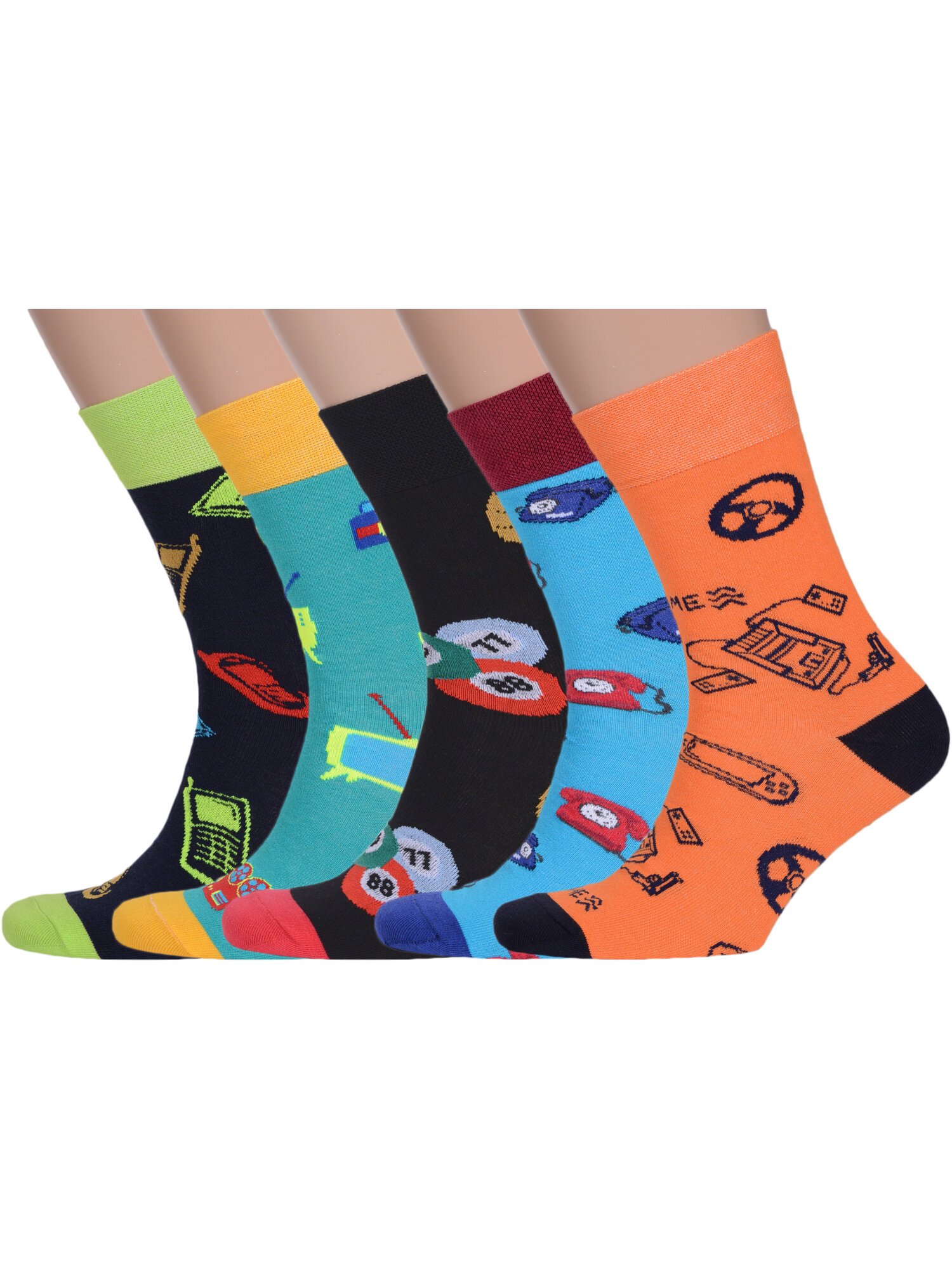 Носки MSCLUB, комплект, 5 пар, размер 29 (44-46), желтый, красный, оранжевый, черный