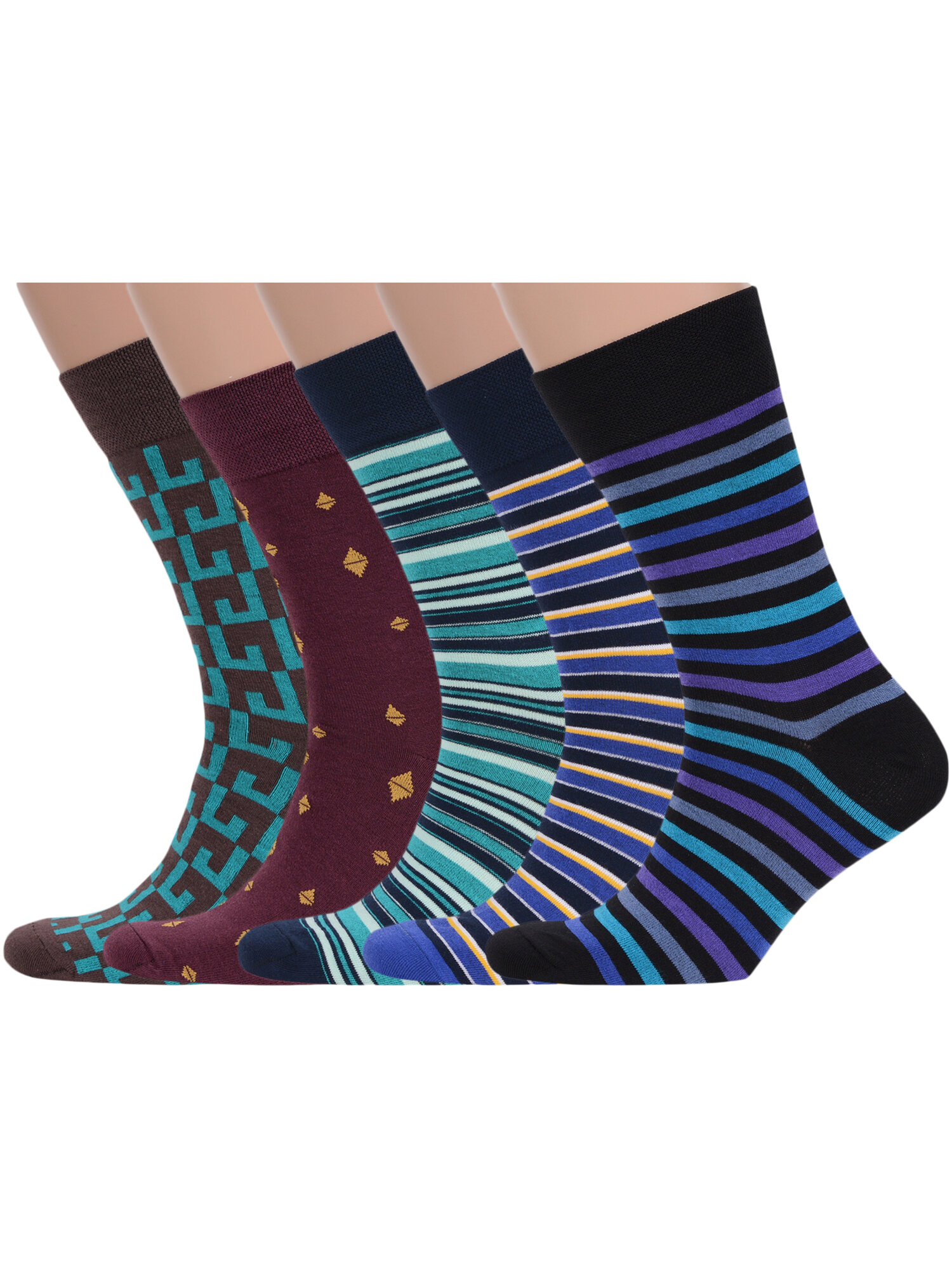 Купить Носки MSCLUB, комплект, 5 пар, размер 27 (41-43), бирюзовый, синий, коричневый