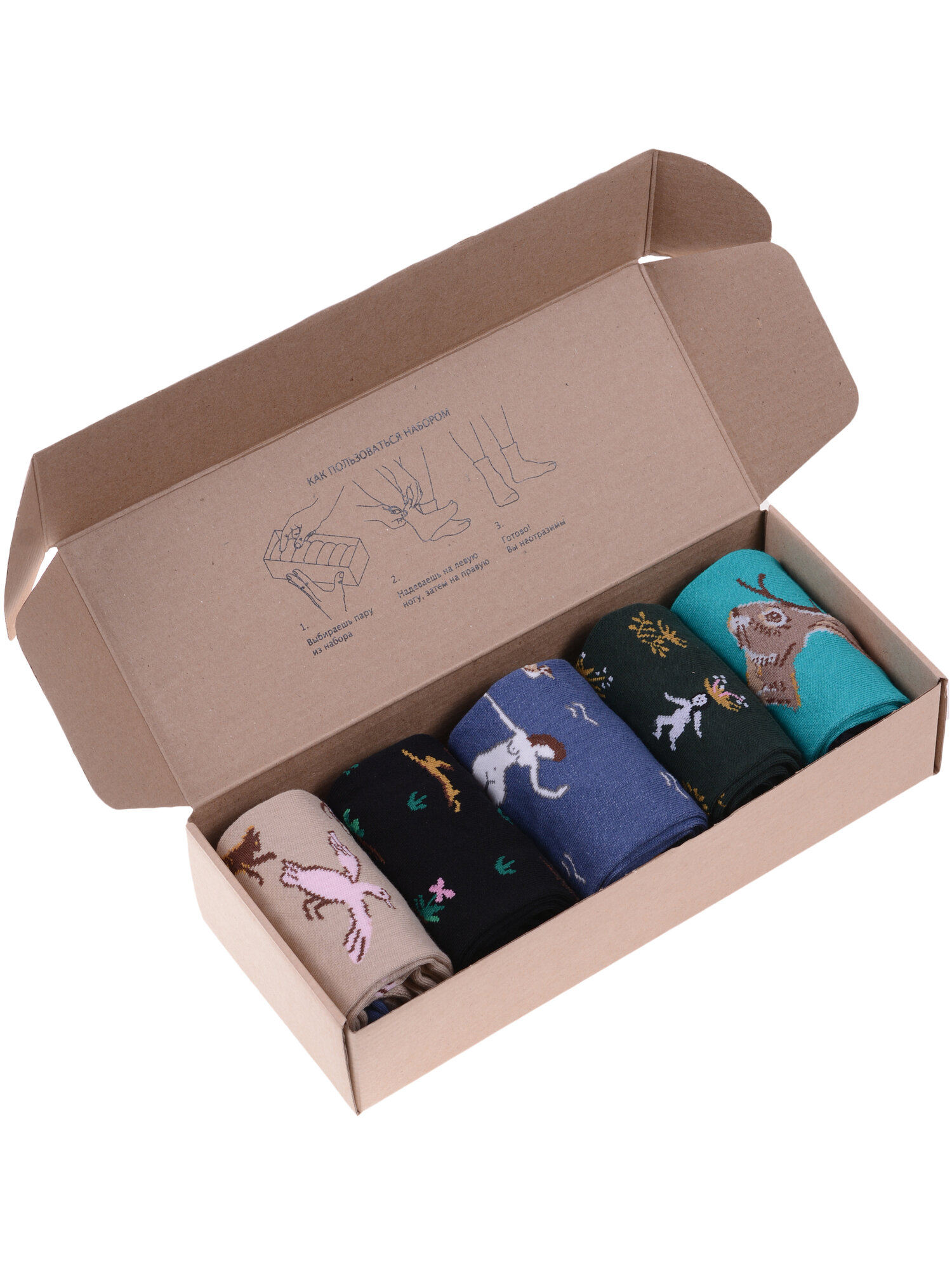 Купить Носки MSCLUB, комплект, 5 пар, размер 25 (38-40), зеленый, синий, бежевый, черный