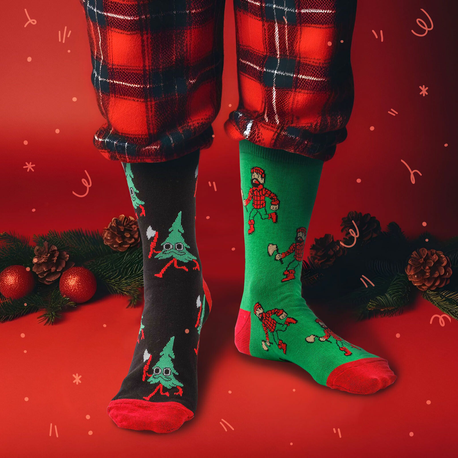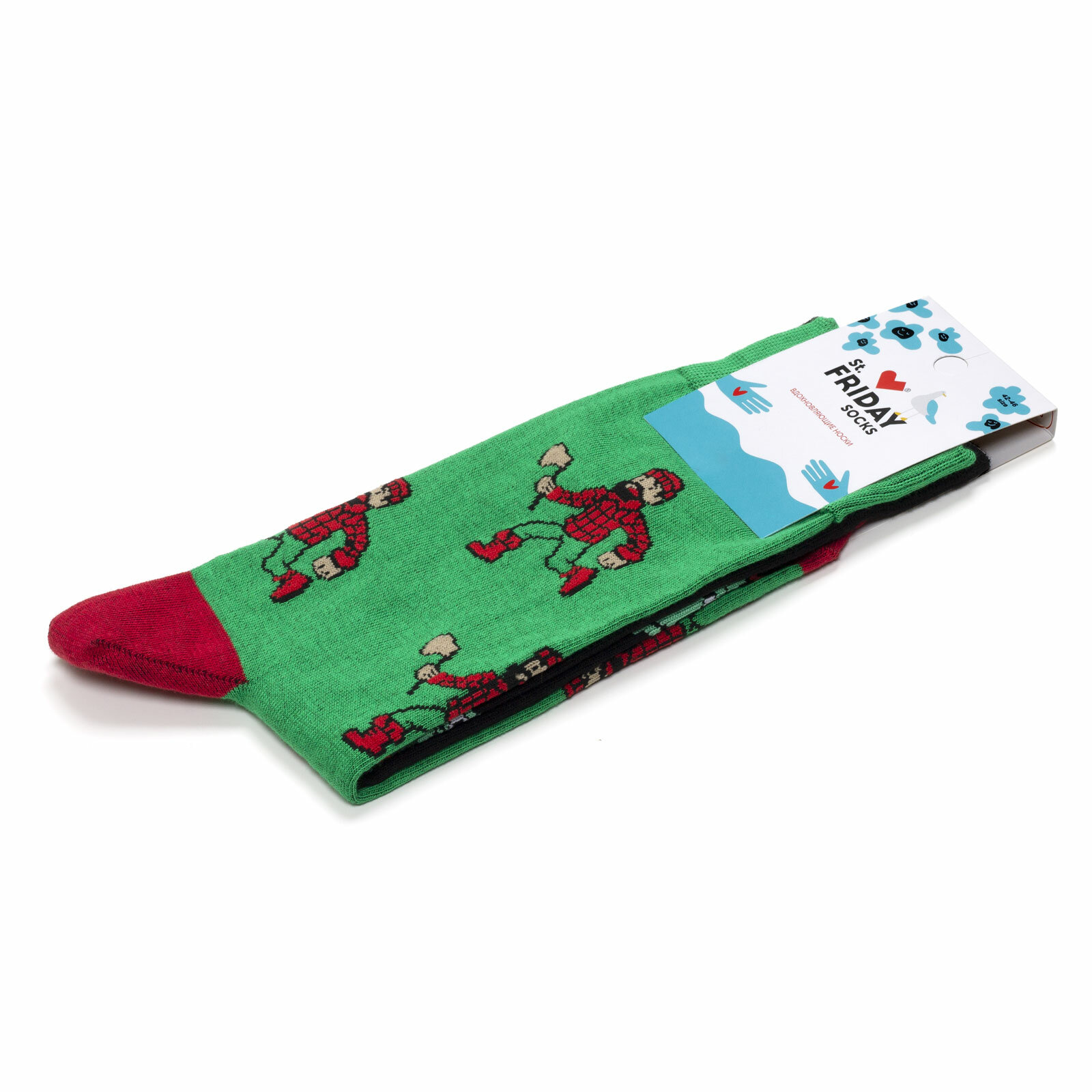 Носки St. Friday Новогодние носки - Дровосек и ёлка, размер 42-46, красный, черный, зеленый