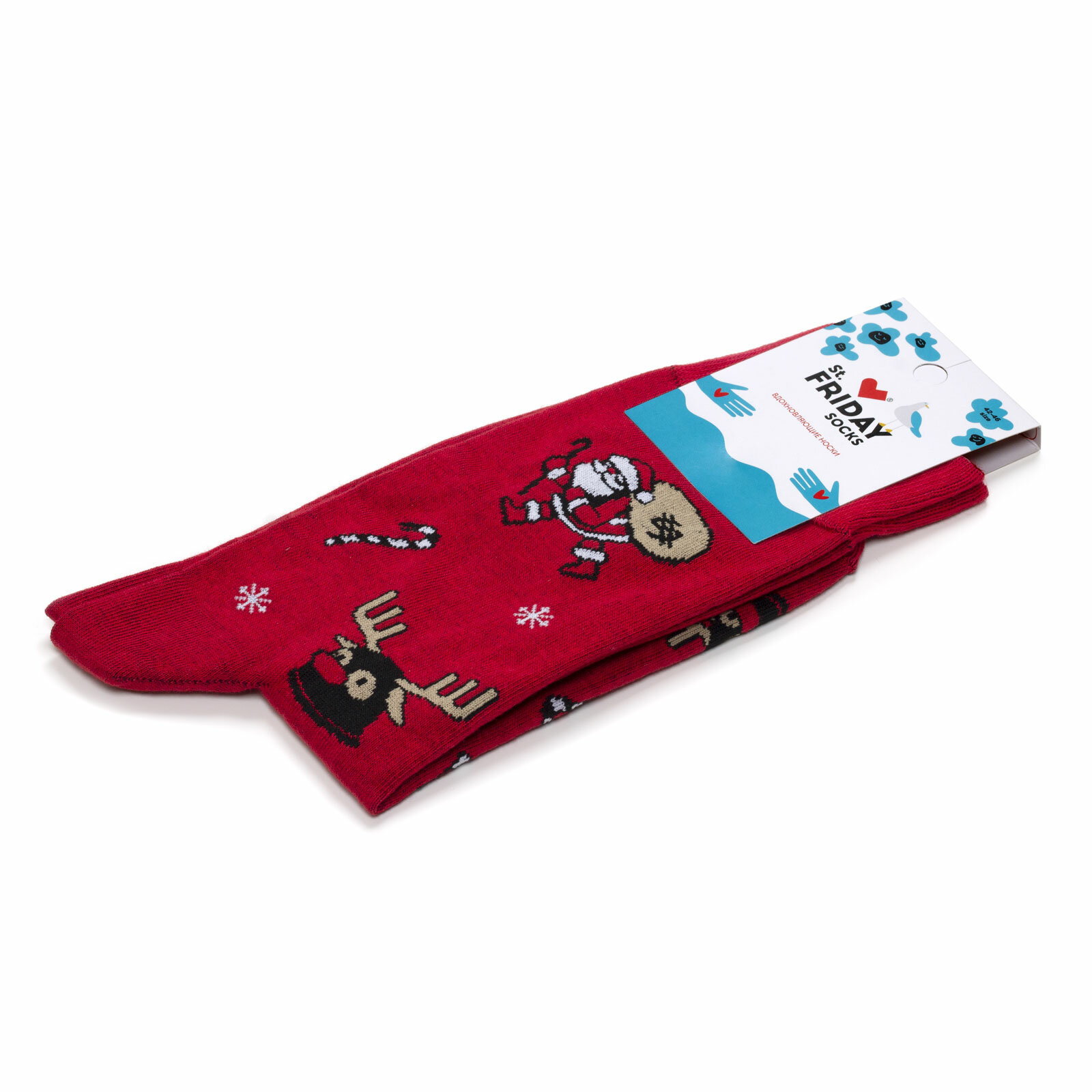 Носки St. Friday Новогодние носки с красным оленем, размер 42-46, красный, черный, белый