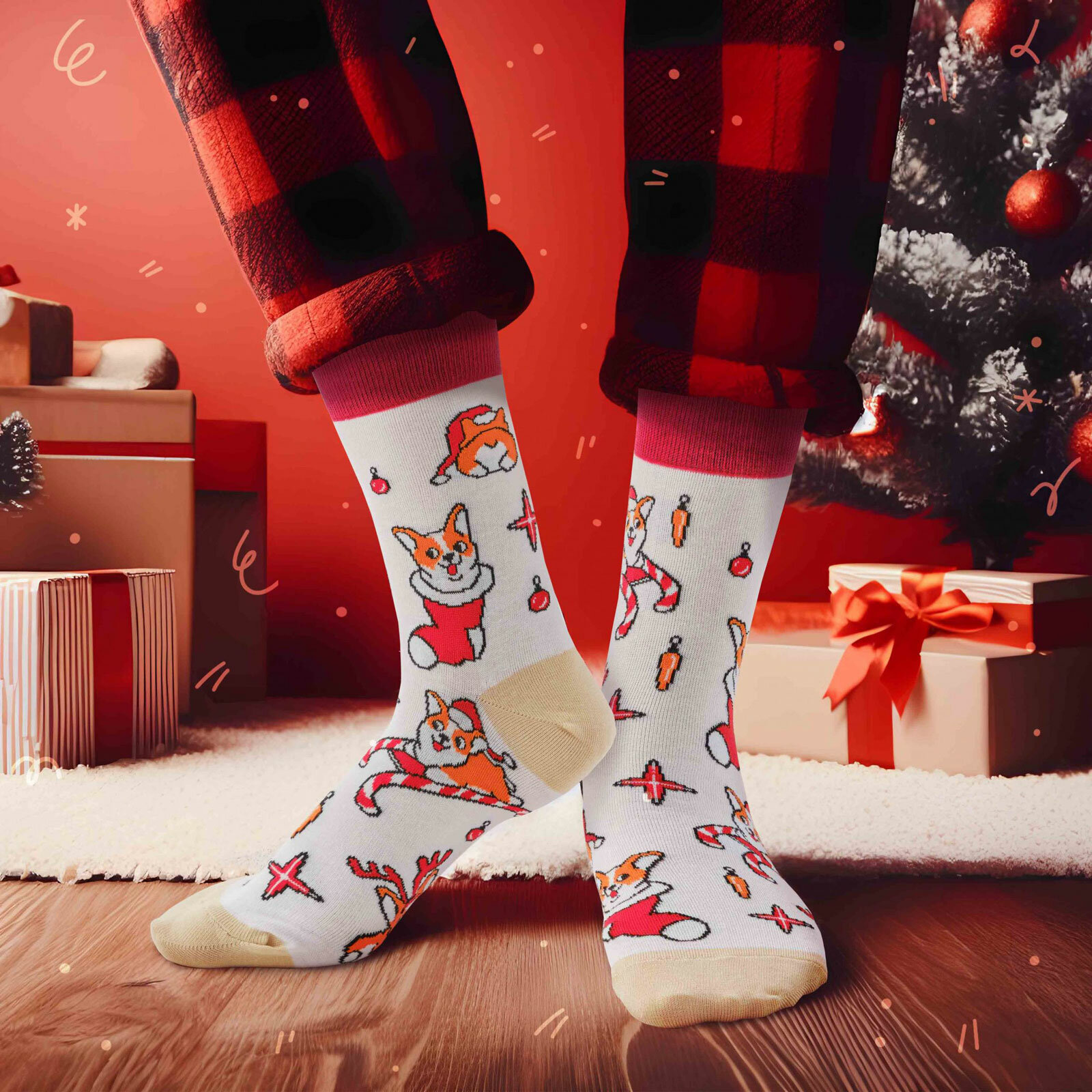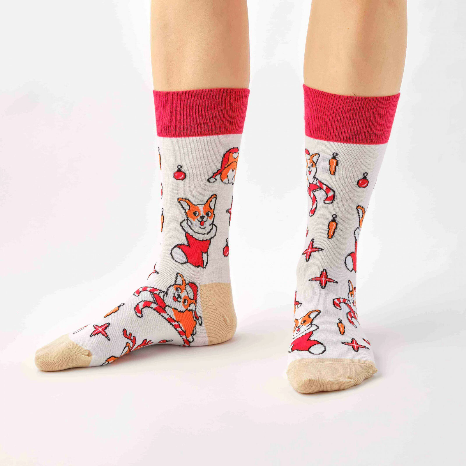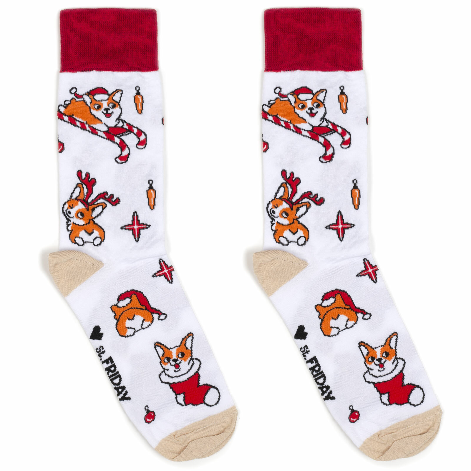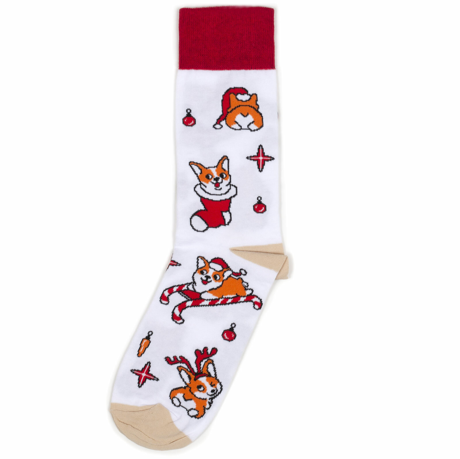 Купить Носки St. Friday Новогодние носки - Корги Новый Год, размер 42-46, коричневый, белый, оранжевый