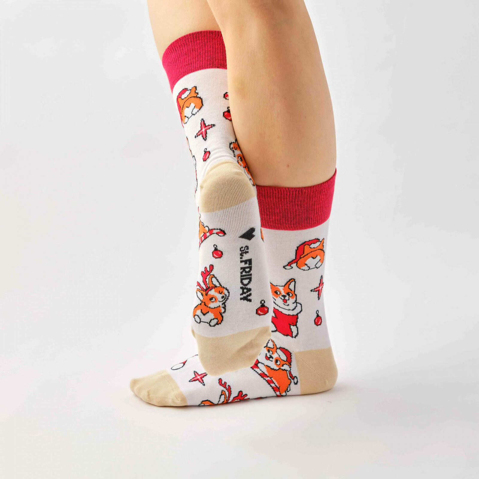 Носки St. Friday Новогодние носки - Корги Новый Год, размер 38-41, коричневый, белый, оранжевый